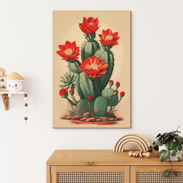 Schilderij Bloeiende cactus met rode bloemen Art. s40806