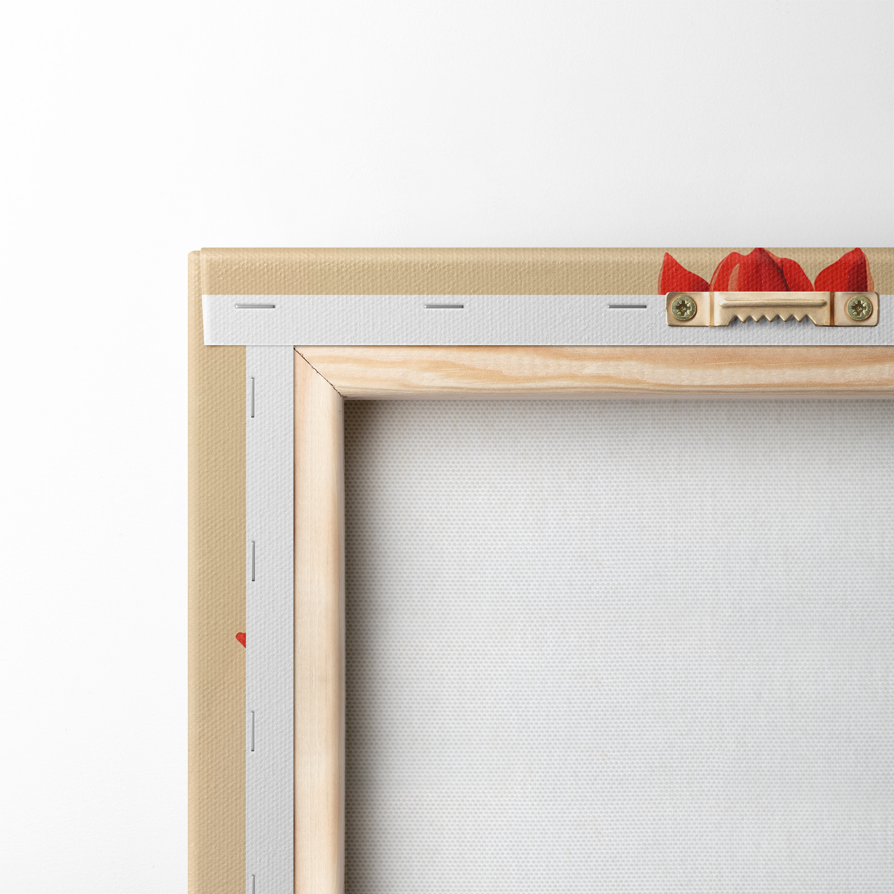 Om het doek op te spannen op spielatten zonder de afbeelding te beschadigen, gebruiken we gespiegeld beeld.