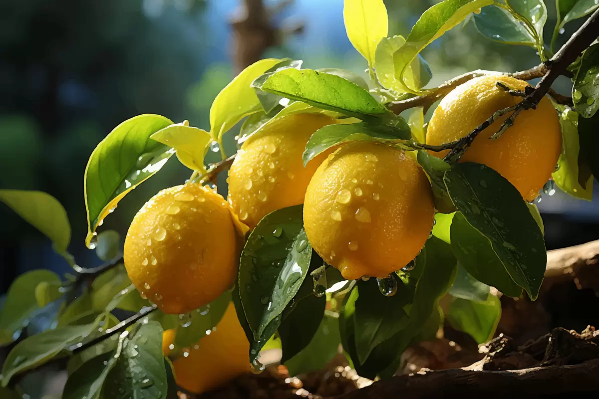Schilderijen Citroenen, citroenen aan de boom, dauw s40840