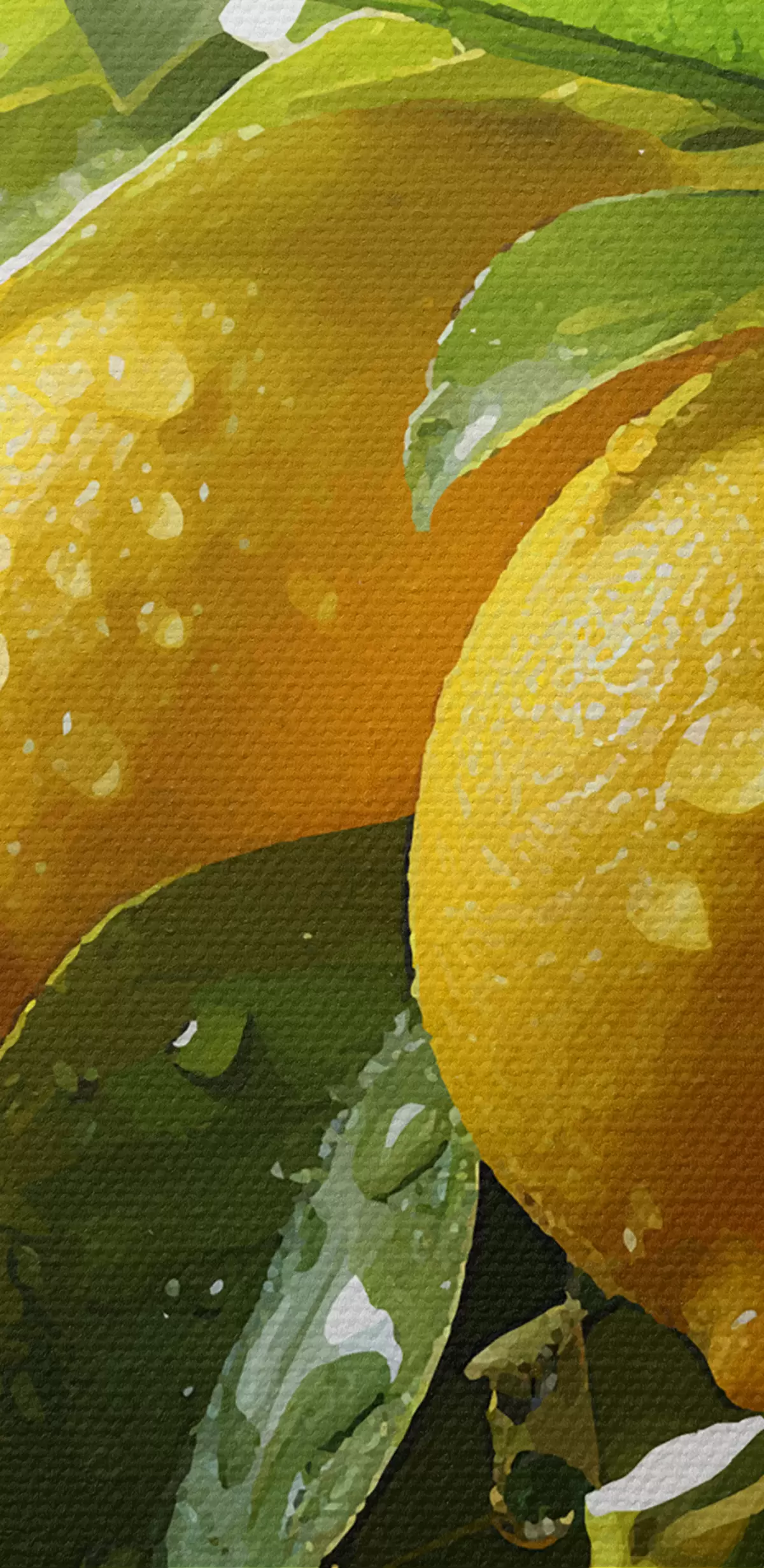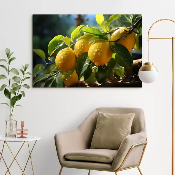 Schilderij Citroenen, citroenen aan de boom, dauw Art. s40840