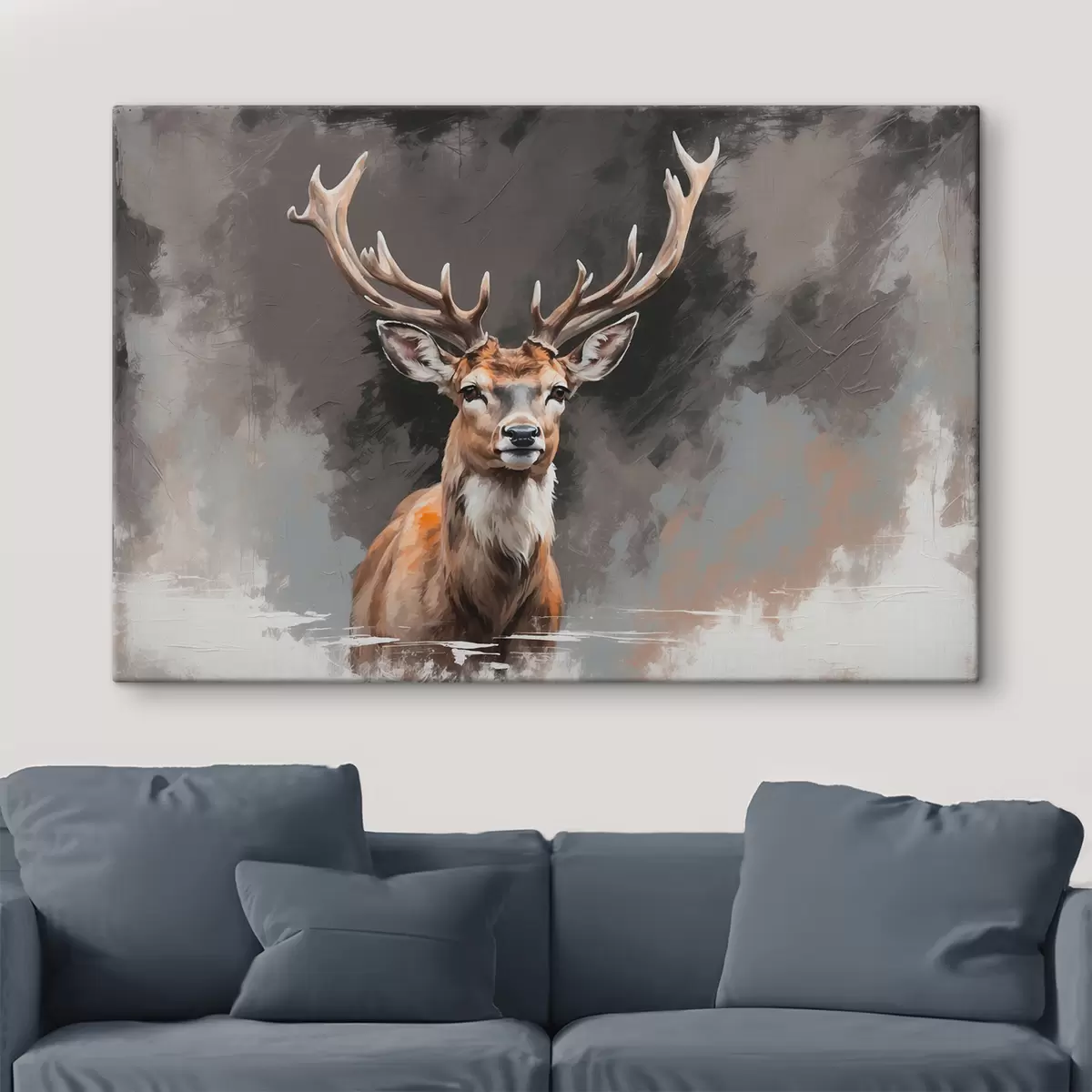 Schilderij Hert op grijs-zwarte achtergrond Art. s40865