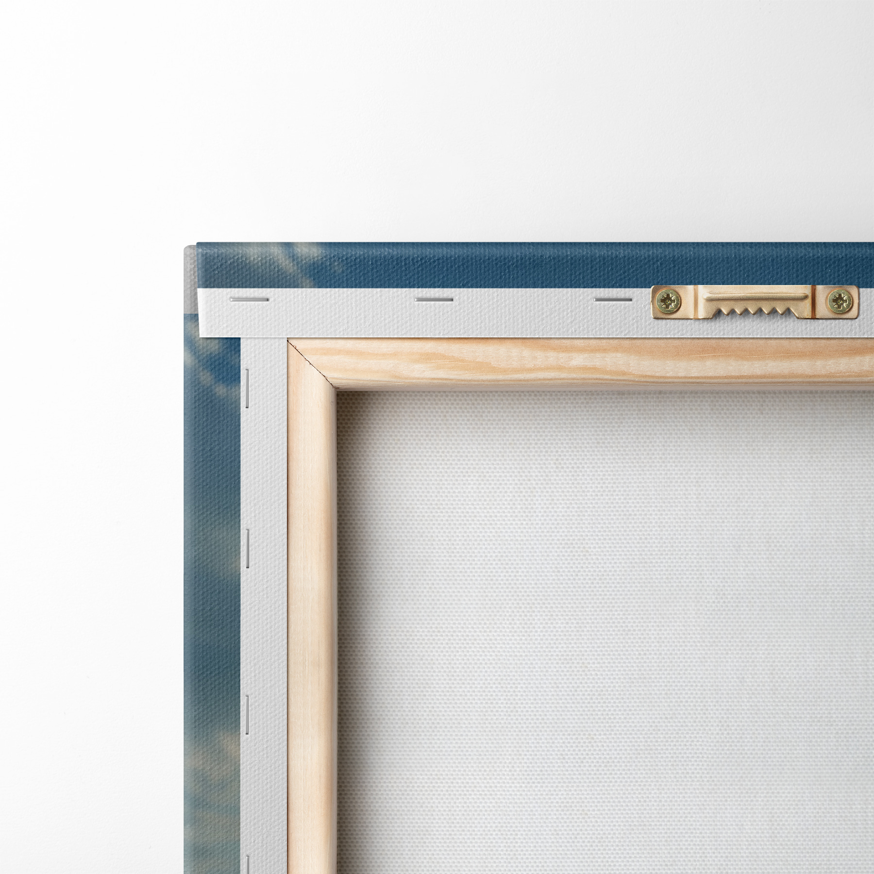 We verkopen foto's op spieraam - dat is een houten frame waarop het doek is opgespannen. Deze foto hoef je niet in te lijsten; je kunt hem direct aan de muur hangen.