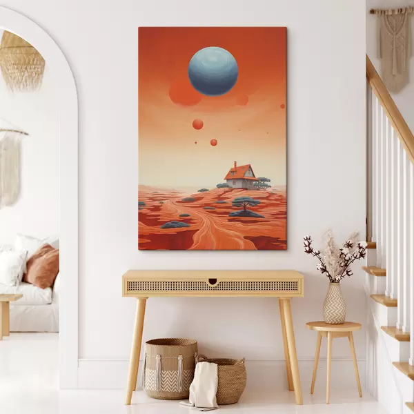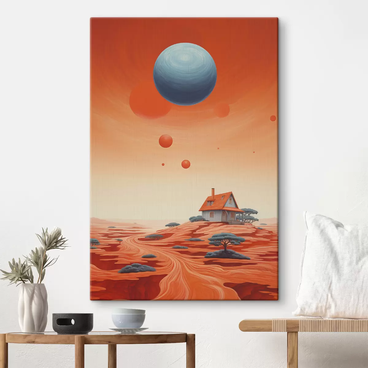 Schilderij Woestijn met huis, futuristische kunst, kosmisch, planeet Art. s40944