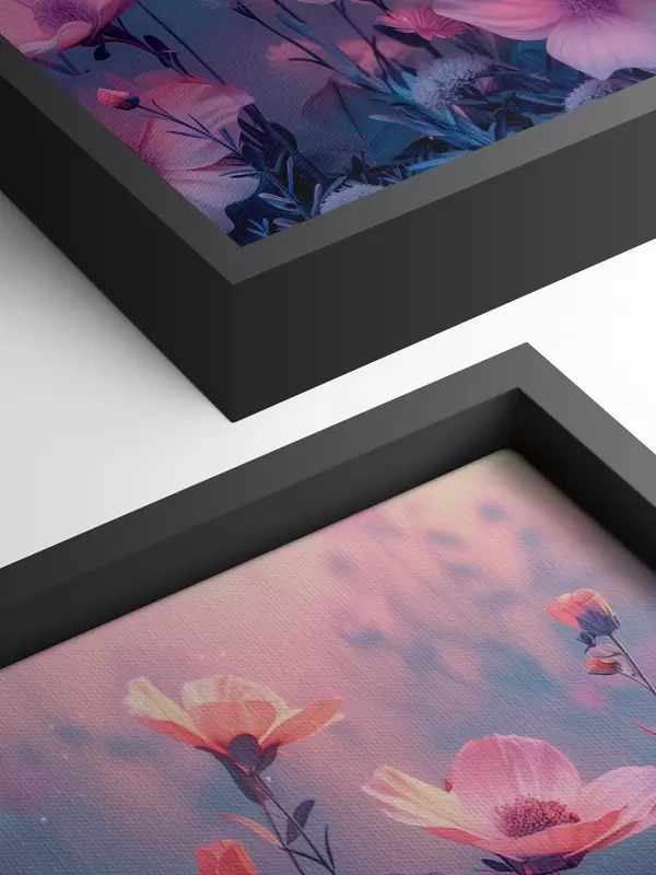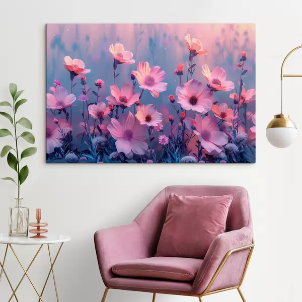 Schilderij Sprookjesachtige wilde bloemen in roze en blauwe tinten Art. s40990