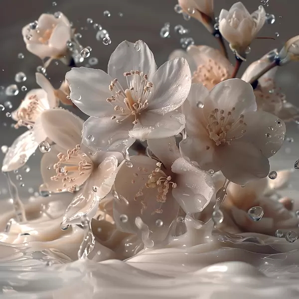 Schilderij Jasmijnbloemen in een werveling van druppels Art. s41003