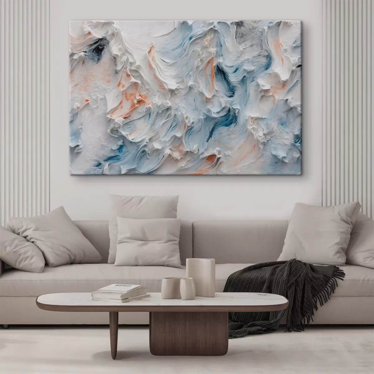 Schilderij Abstractie met witte, oranje en blauwe kleuren Art. s41026