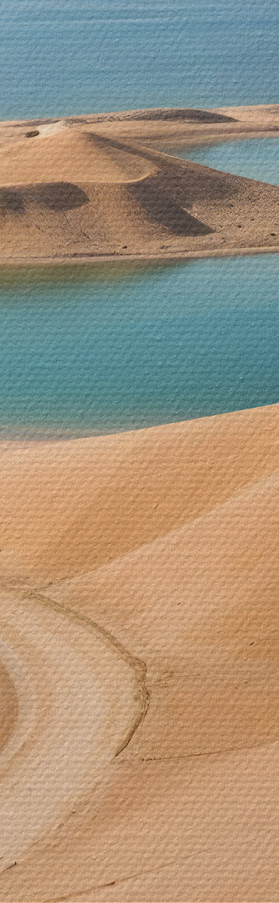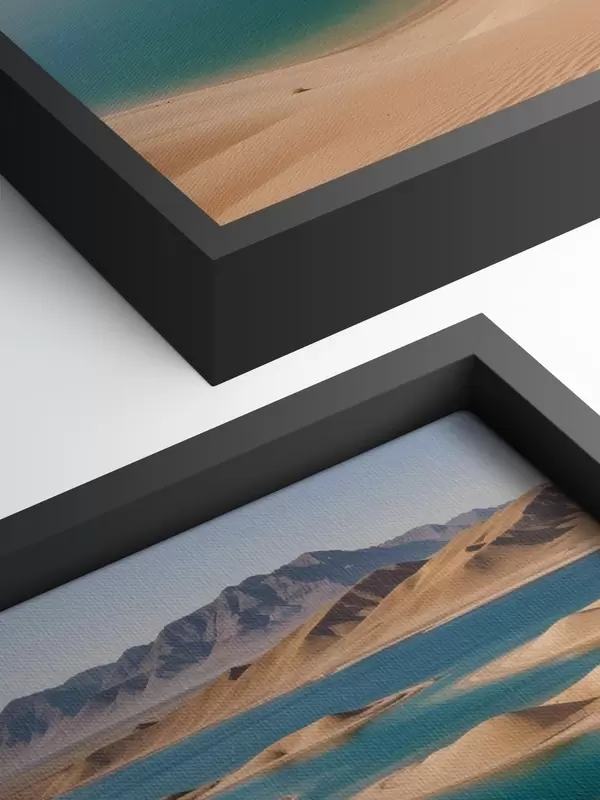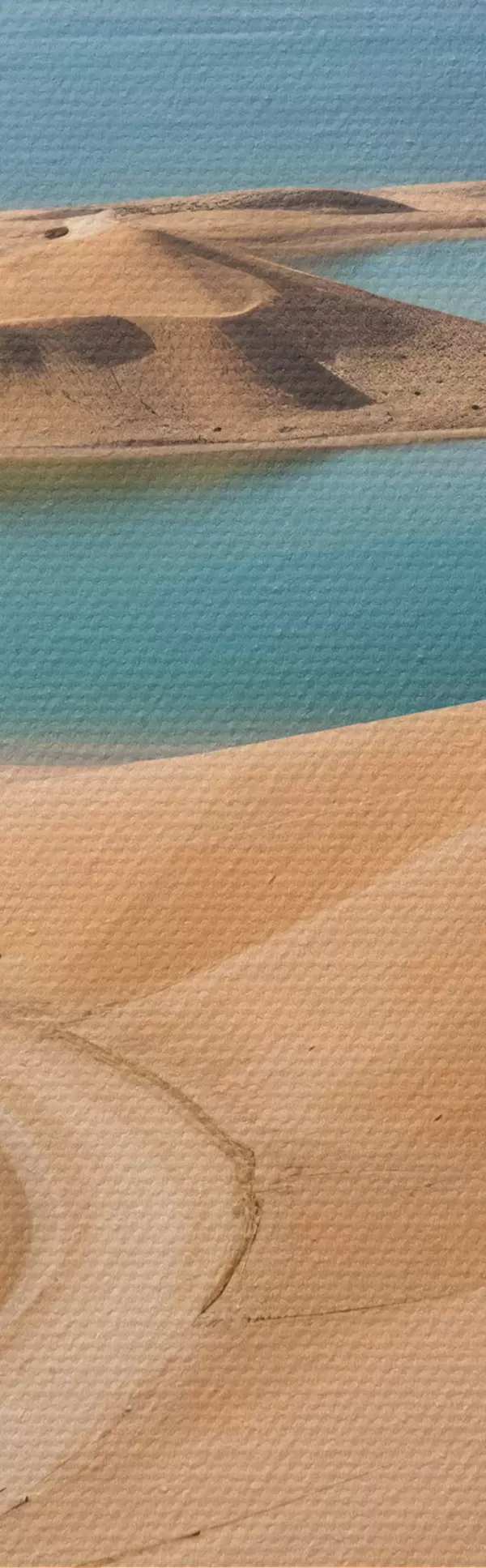 Schilderij Een uitgestrekt woestijnlandschap met glooiende zandduinen en turquoise meren, omringd door ruige bergen Art. s41087