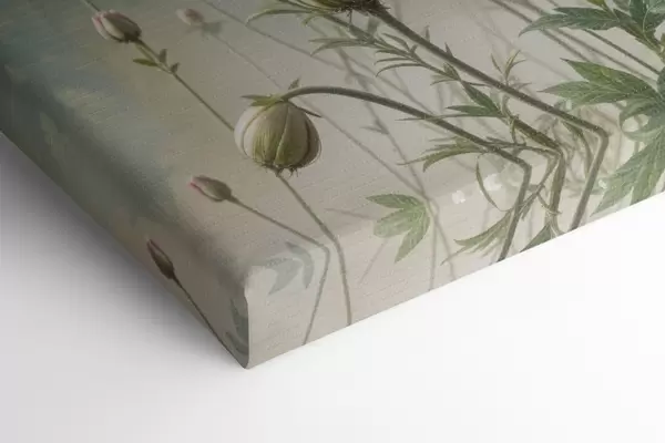 Schilderij Een veld van delicate, lichtroze klaproosbloemen met zachte, piekerige bloemblaadjes tegen een vage groene achtergrond Art. s41094