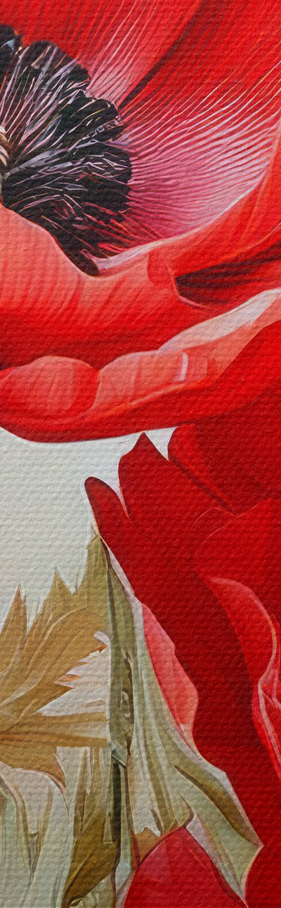 Er zijn drie soorten materiaal te bestellen: Economic Canvas - een dicht en duurzaam materiaal voor digitaal printen, identiek aan schildersdoek, waterdicht oppervlak, realistische weergave van details, materiaal met gemiddelde korrel. Premium Canvas - de textuur lijkt op die van schildersdoek (verweven kleine draden). Zachte, gedetailleerde reproductie van de afbeelding op een mat oppervlak. Eco-Premium - hoogwaardige 100% katoenen stof. Dankzij de natuurlijke katoenvezels is het materiaal duurzaam en slijtvast. Uitstekende kleurweergave en detail.