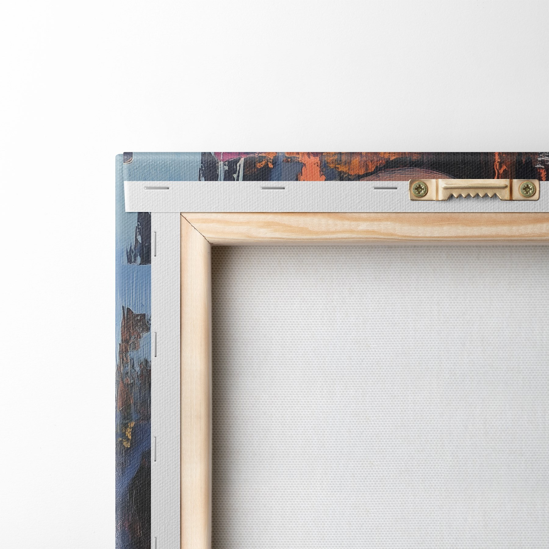 Het schilderij kan direct na ontvangst worden opgehangen. Het schilderij wordt opgespannen op een 2 cm breed houten spieraam.
