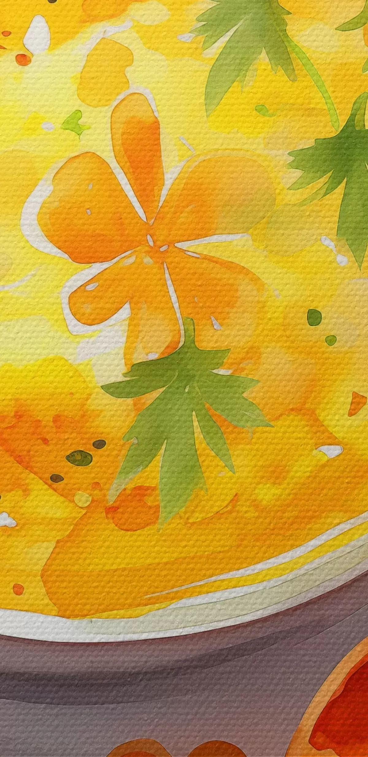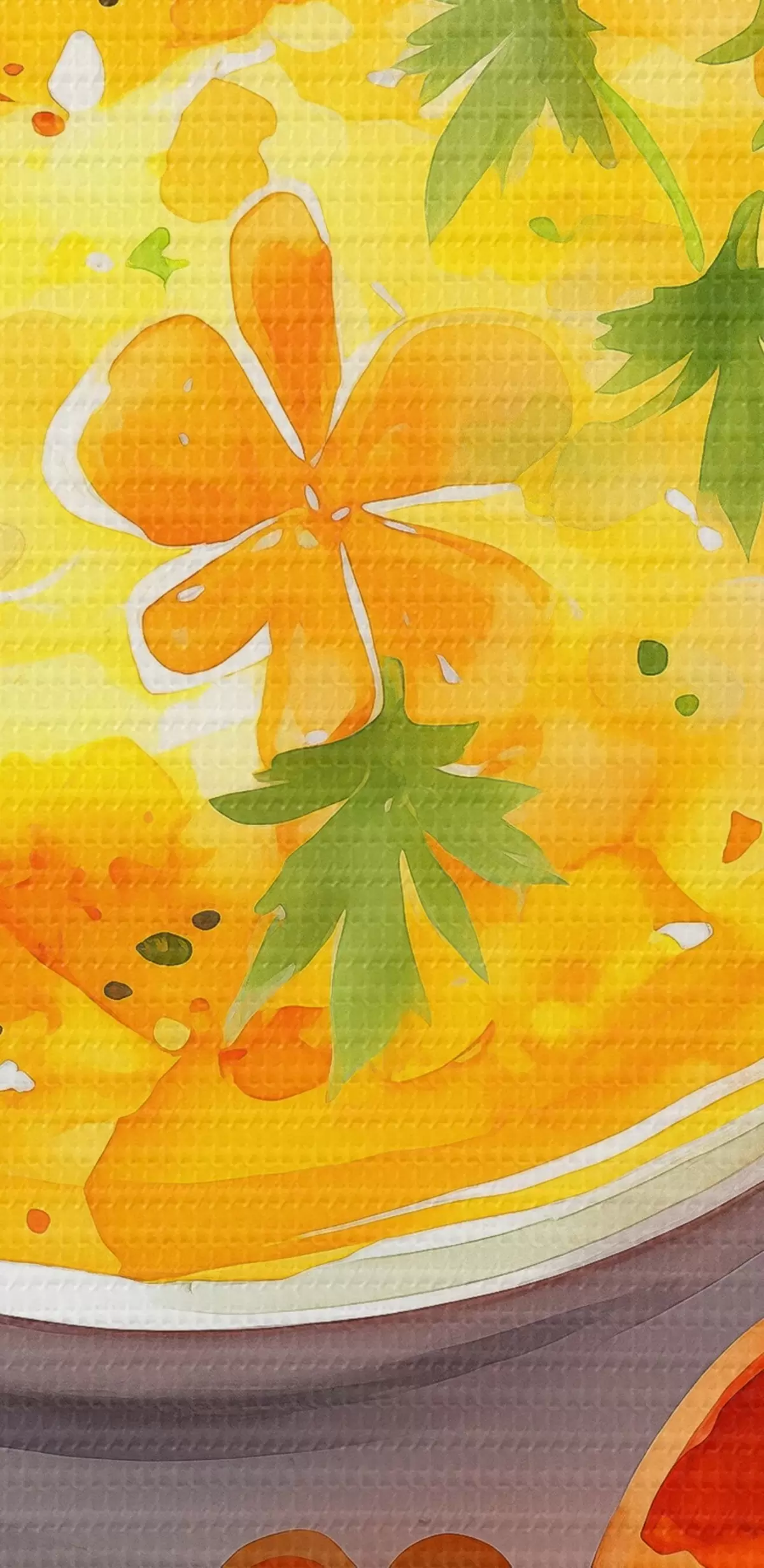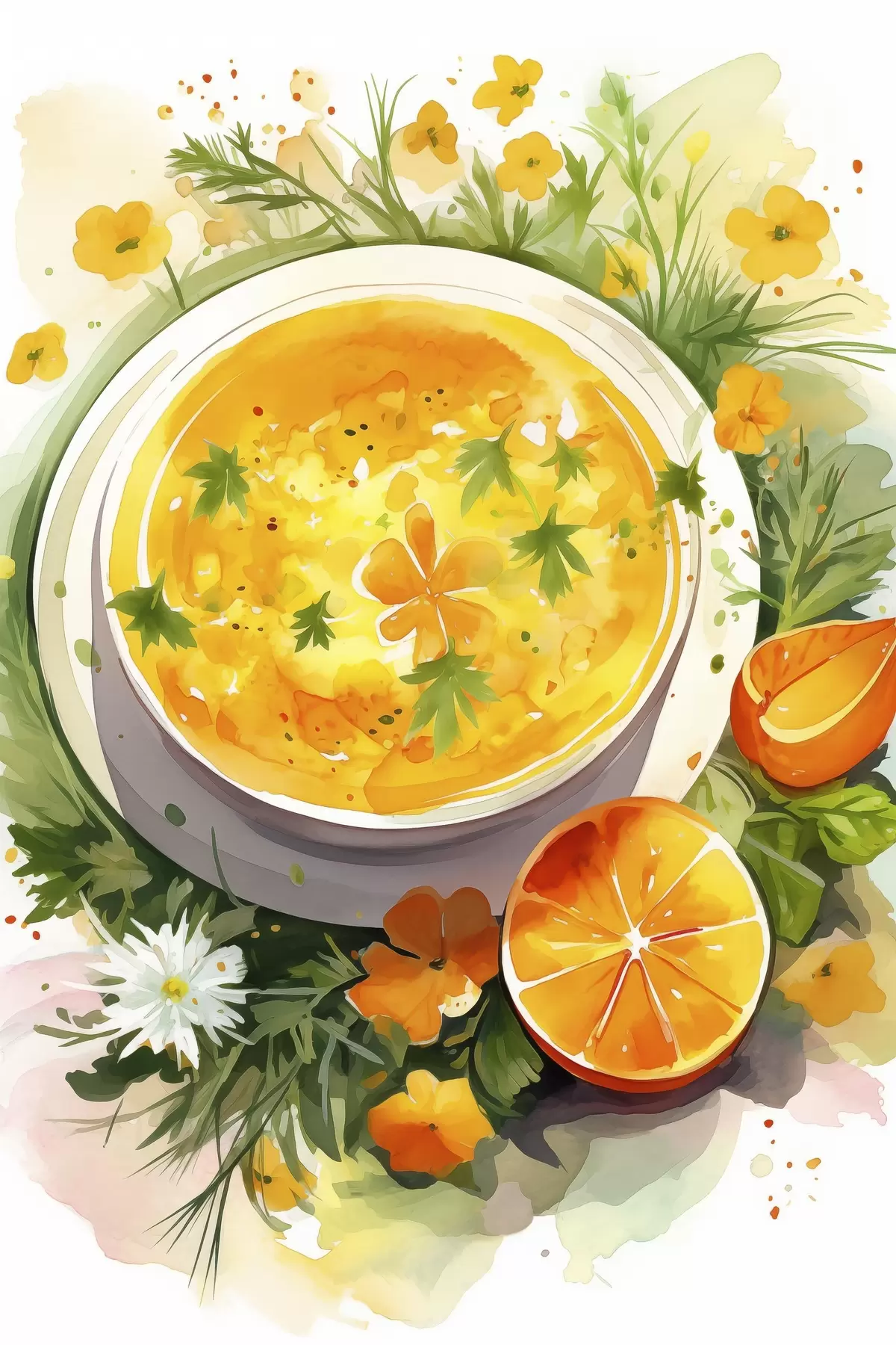 Schilderij Pompoensoep, aquarel, herfstkleuren, oranje Art. s41170