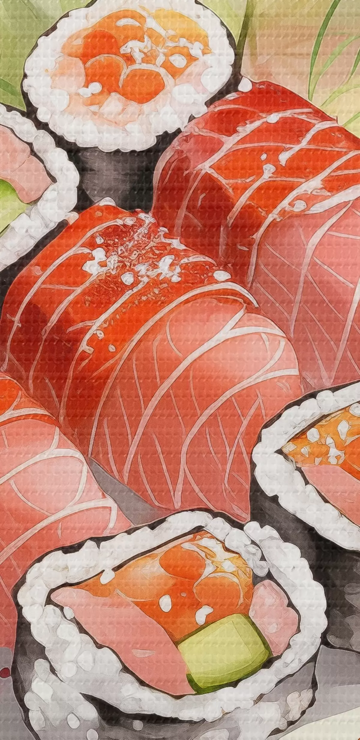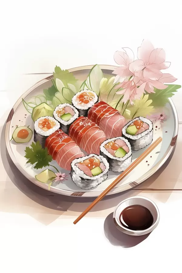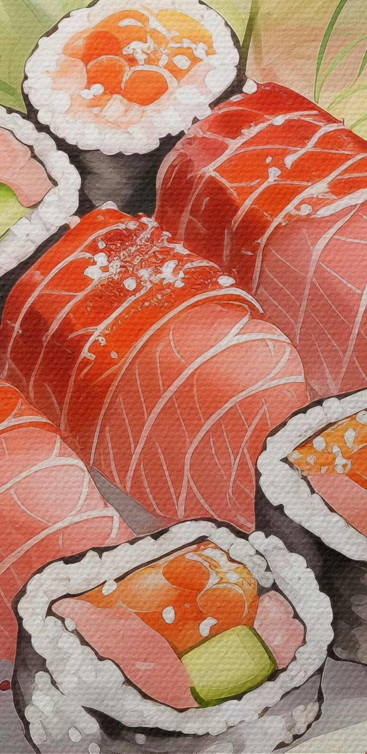 Schilderij Aquarel sushi, bloemig, Japans Art. s41181