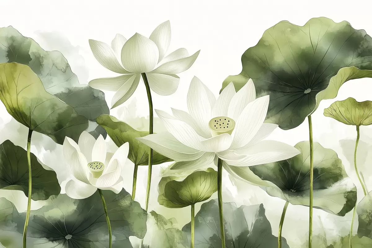 Schilderij Prachtige waterverf lotusbloemen Art. s41227