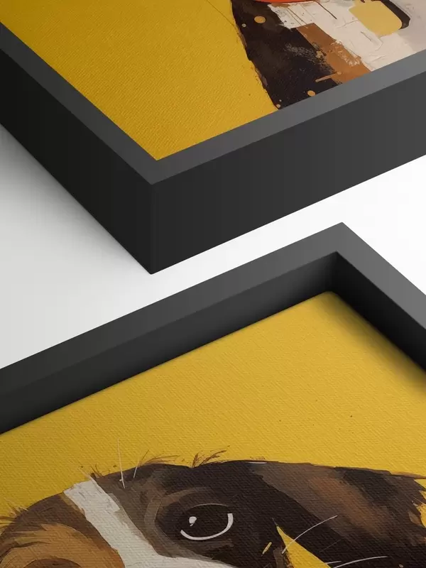 Schilderij Portret van een hond op een gele achtergrond Art. s41232