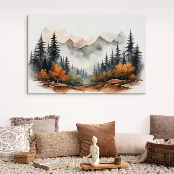Schilderijen Bos op de achtergrond van bergen aquarel s41240