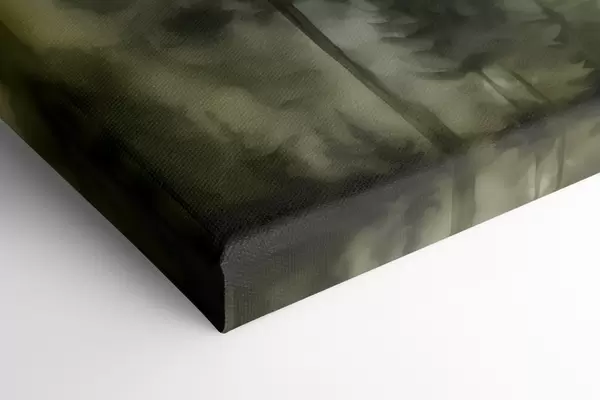 Schilderij Groen bos op de achtergrond van bergen bergen en mist aquarel Art. s41241
