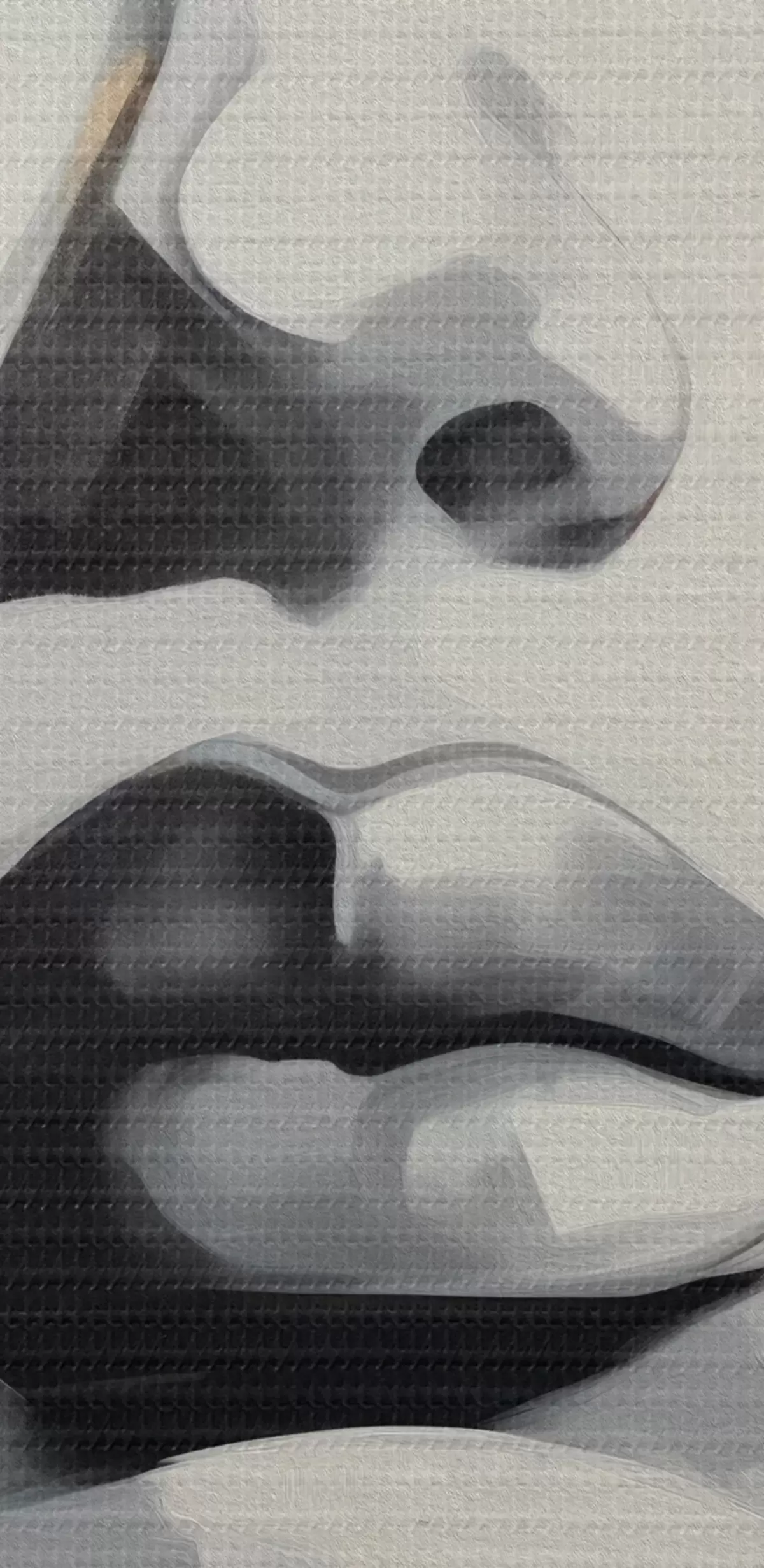 De fijne weving van draden op dit doek lijkt op het oppervlak van professionele schildersdoeken.