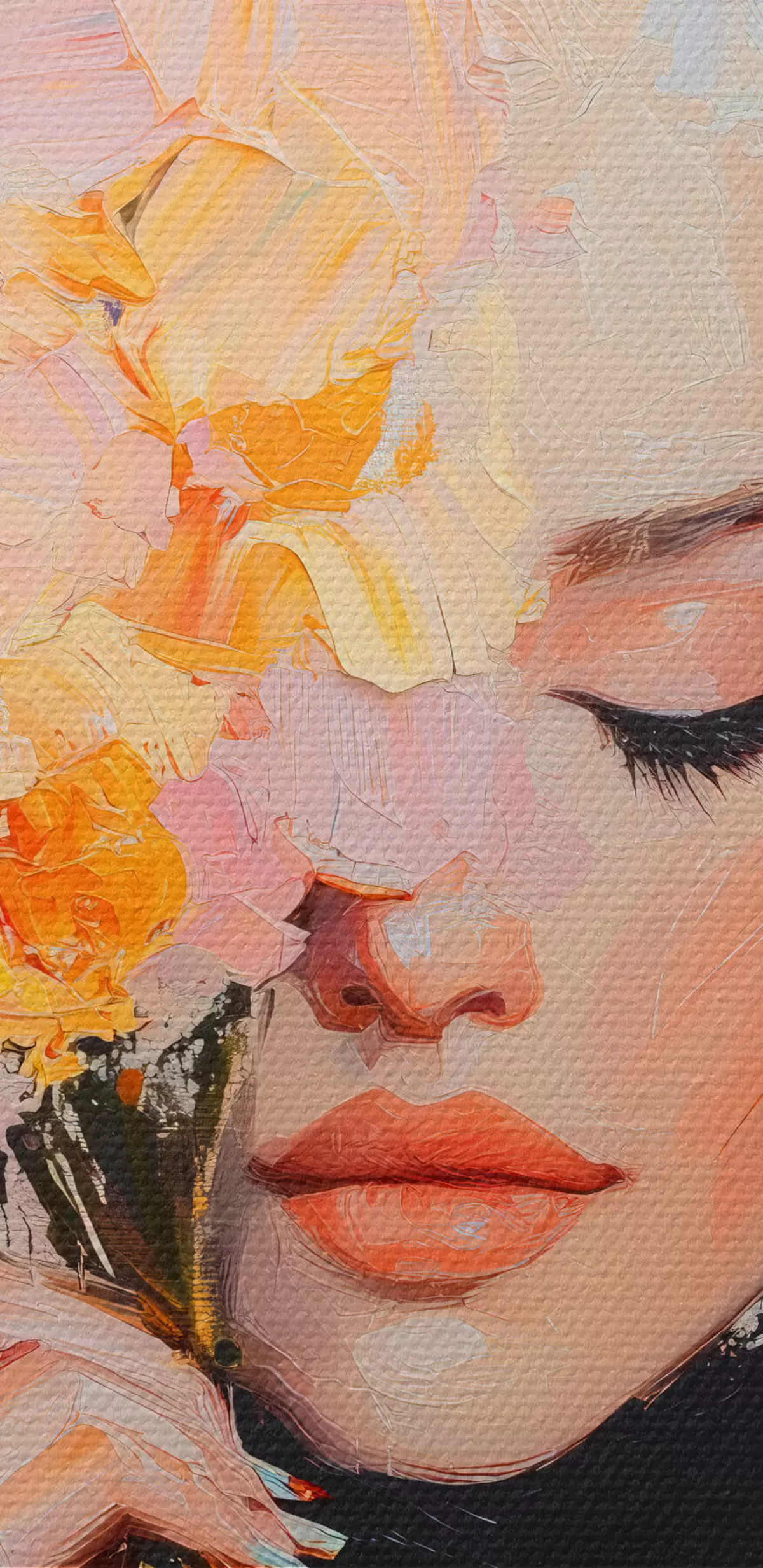 Schilderij Abstracte vrouw met een boeket bloemen in haar handen met penseelstreken Art. s41355