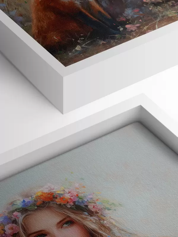 Er zijn drie soorten materiaal te bestellen: Economic Canvas - een dicht en duurzaam materiaal voor digitaal printen, identiek aan schildersdoek, waterdicht oppervlak, realistische weergave van details, materiaal met gemiddelde korrel. Premium Canvas - de textuur lijkt op die van schildersdoek (verweven kleine draden). Zachte, gedetailleerde reproductie van de afbeelding op een mat oppervlak. Eco-Premium - hoogwaardige 100% katoenen stof. Dankzij de natuurlijke katoenvezels is het materiaal duurzaam en slijtvast. Uitstekende kleurweergave en detail.