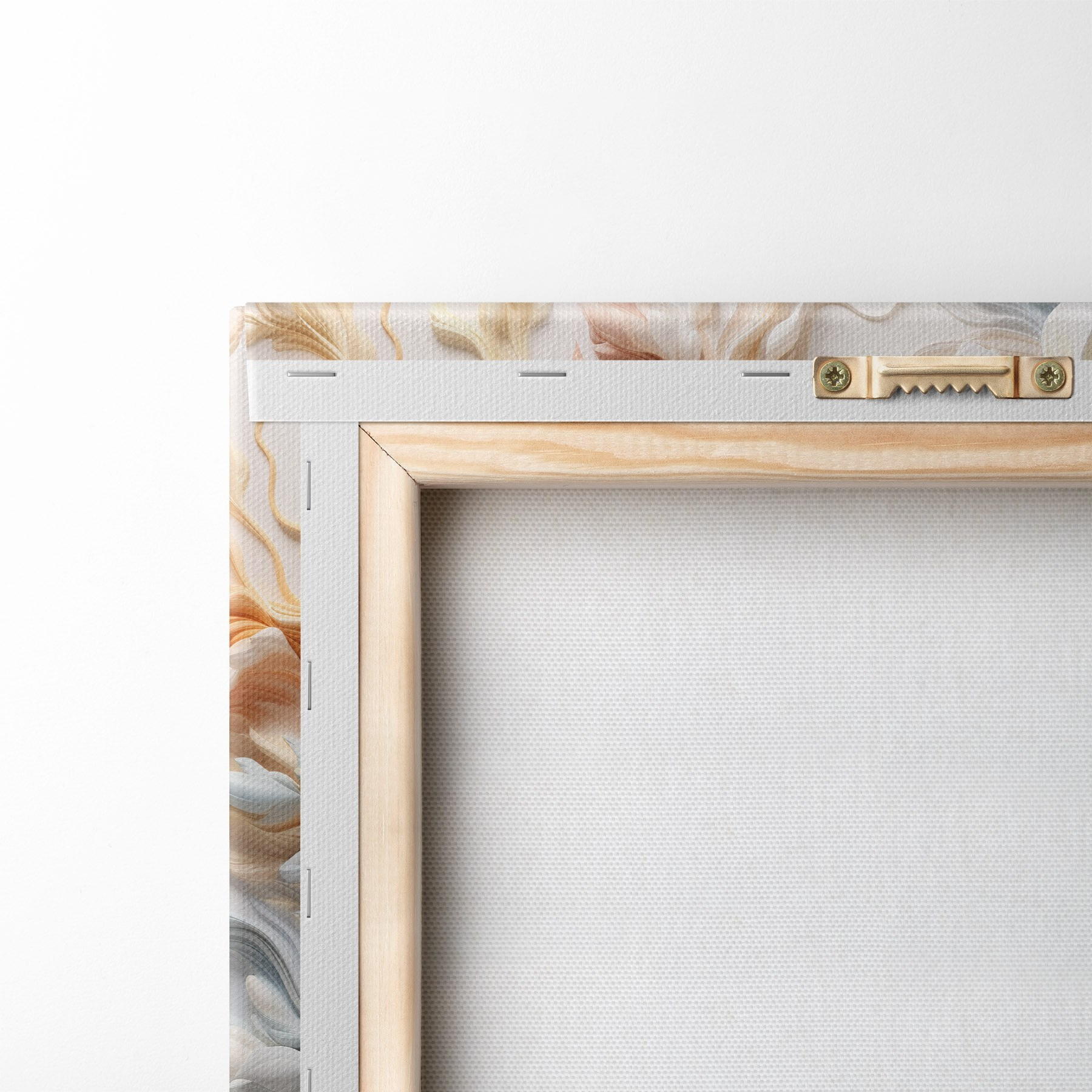 Om het doek op te spannen op spielatten zonder de afbeelding te beschadigen, gebruiken we gespiegeld beeld.