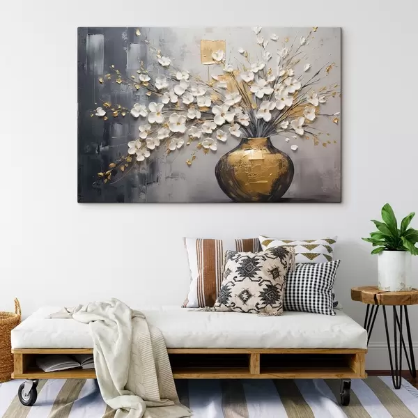 Schilderij Volumetrische kleine lichte bloemen in een vaas, imitatie olieverfschilderij Art. s41558