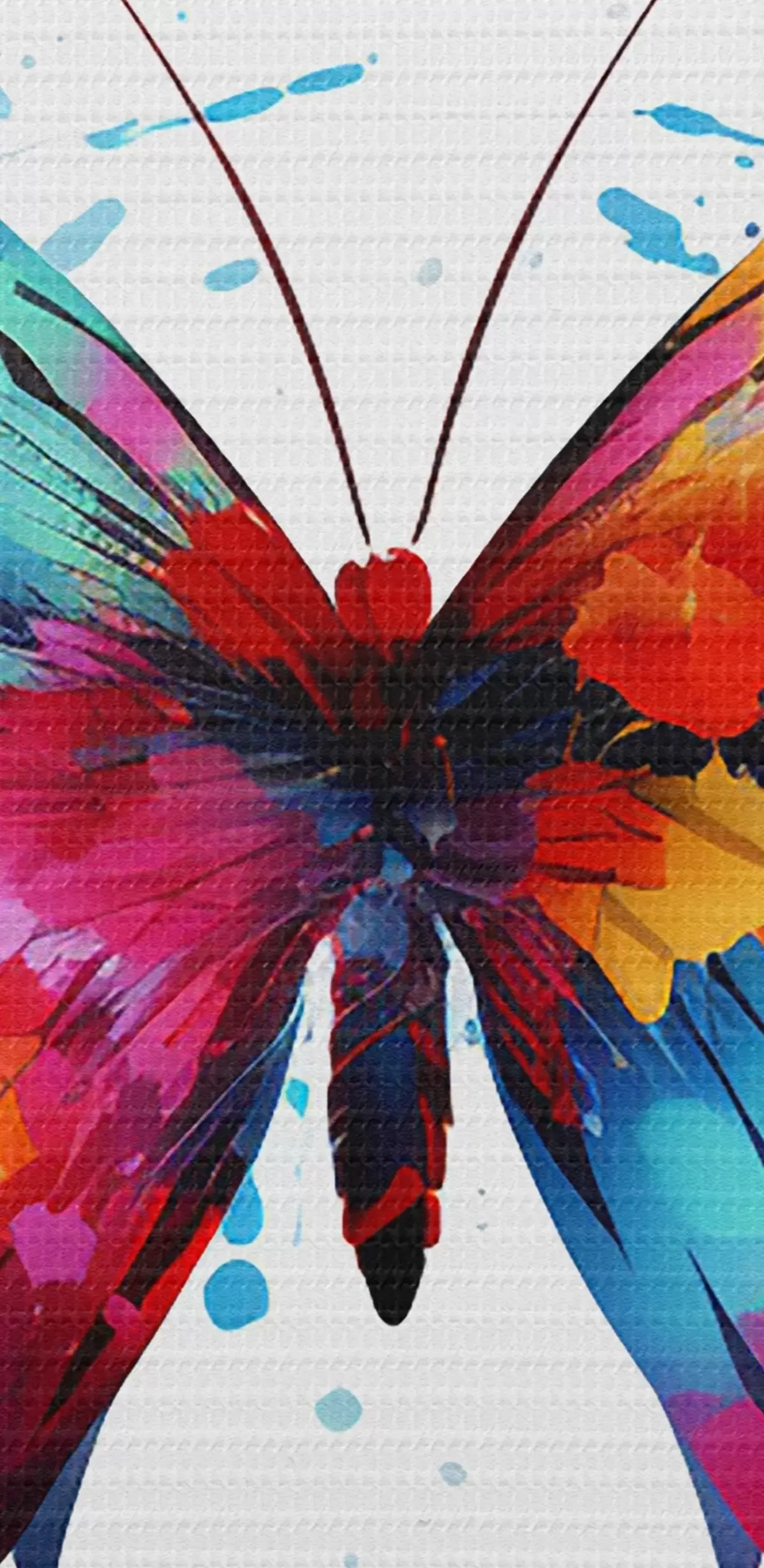 Schilderij Aquarel vlinder op een achtergrond van veelkleurige verfspatten Art. s41560