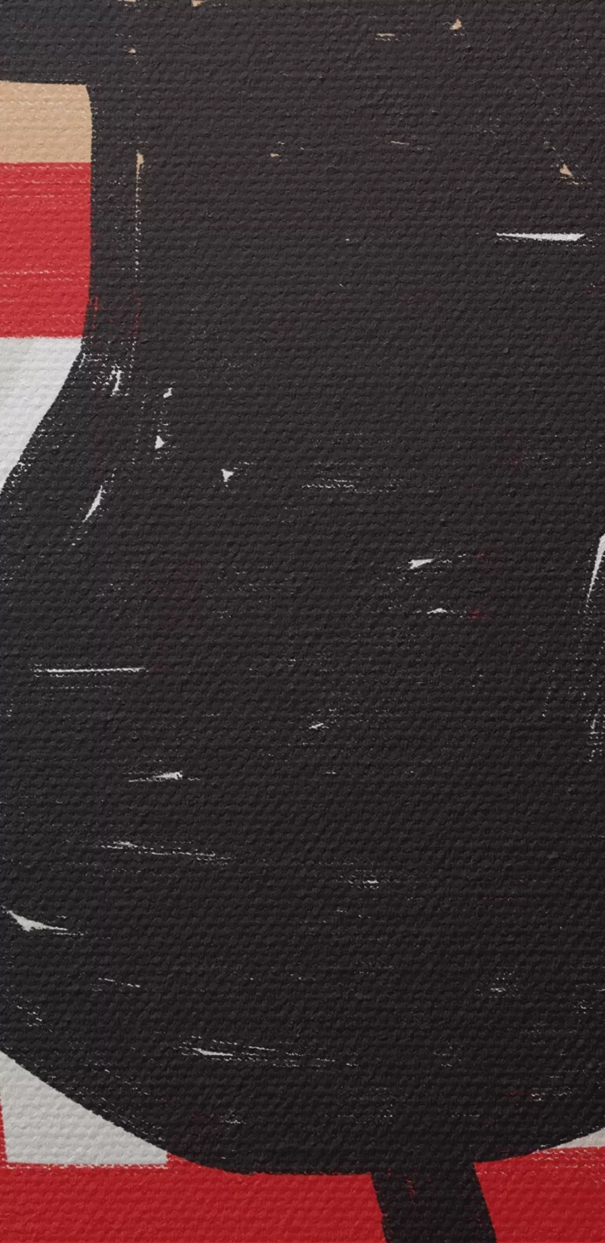 Schilderij Zwarte kat zittend op rode stoel op beige achtergrond, grove streken, imitatie van schilderij Art. s41612