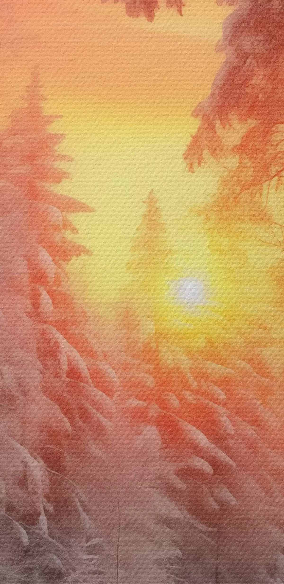 Het schilderij kan direct na ontvangst worden opgehangen. Het schilderij wordt opgespannen op een 2 cm breed houten spieraam.