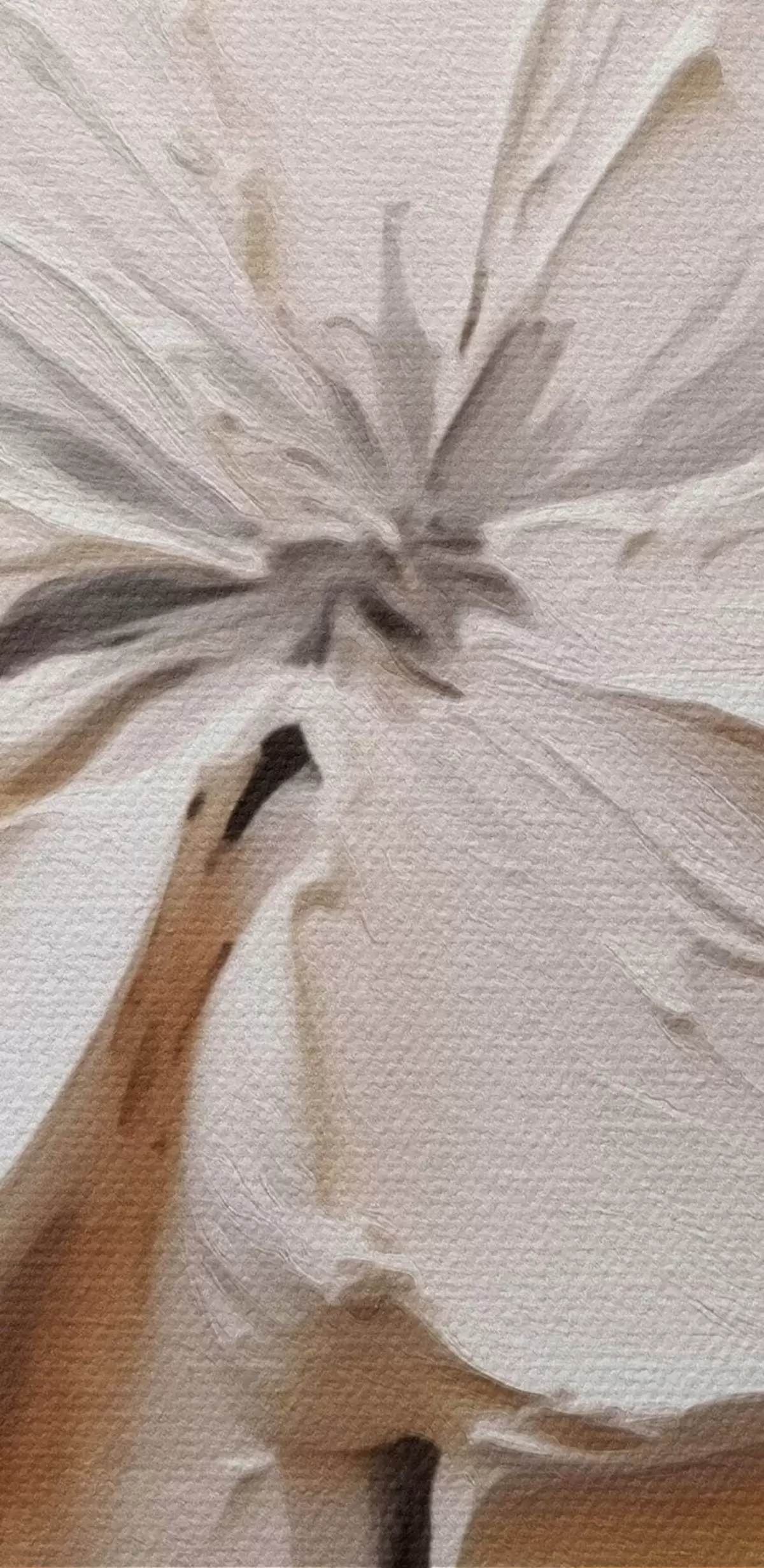 Het schilderij kan direct na ontvangst worden opgehangen. Het schilderij wordt opgespannen op een 2 cm breed houten spieraam.