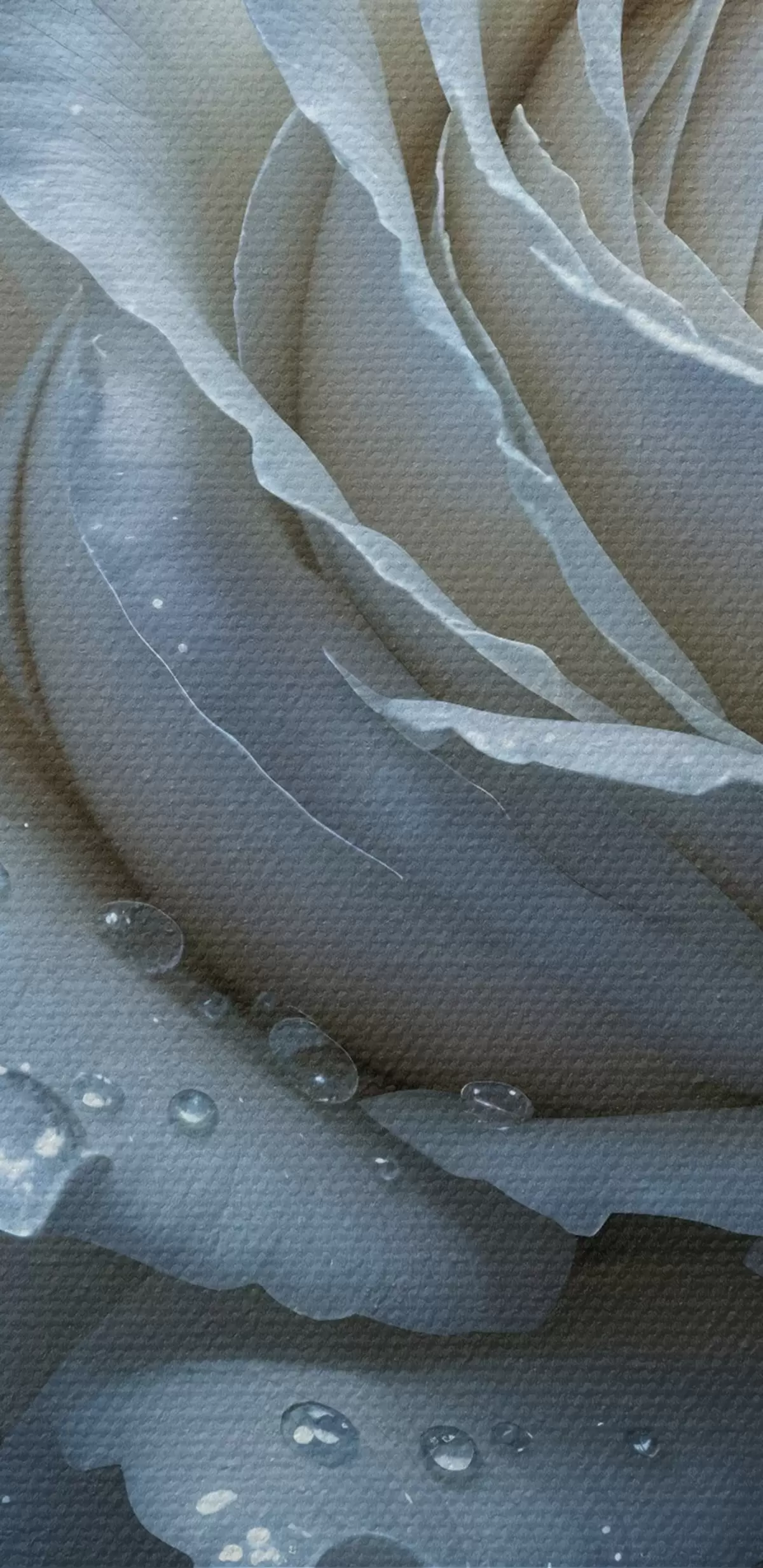 Schilderij Een close-up van een witte roos met waterdruppels op de bloemblaadjes, tegen een donkere achtergrond Art. s41723