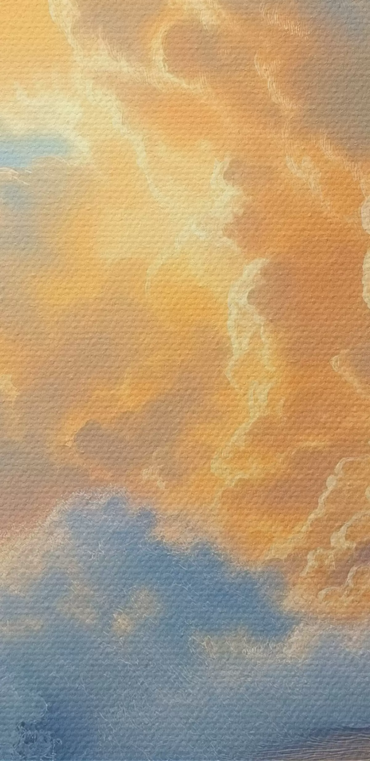 Het schilderij kan direct na ontvangst worden opgehangen. Het schilderij wordt opgespannen op een 2 cm breed houten spieraam.