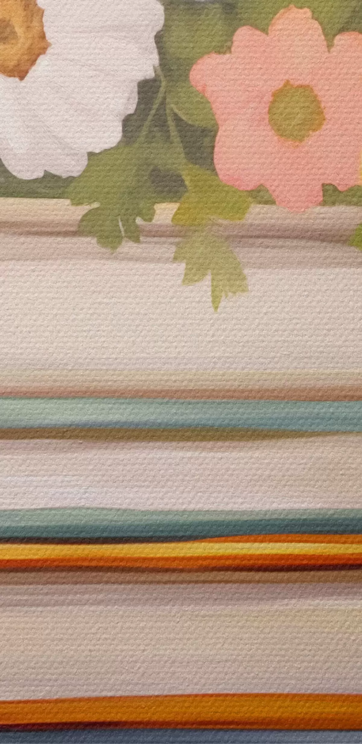 Het schilderij kan direct na ontvangst worden opgehangen. Het schilderij wordt opgespannen op een 2 cm breed houten spieraam.