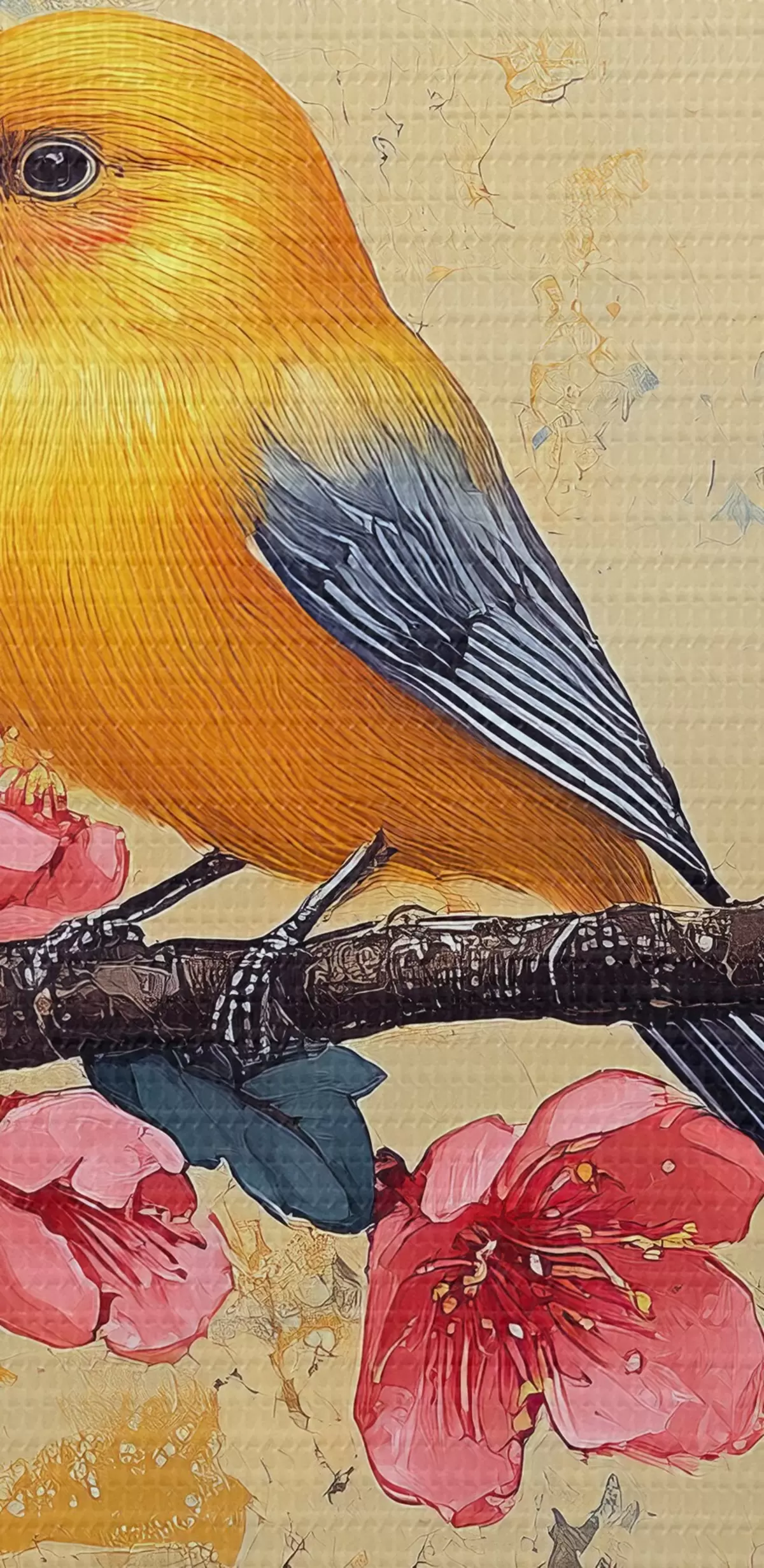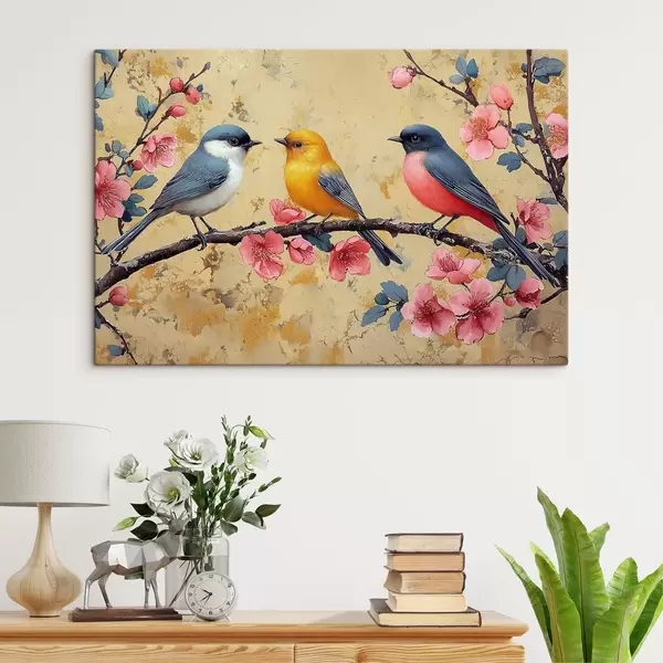 Schilderijen Mussen op een tak van sakura in de stijl van olieverfschilderij s41835