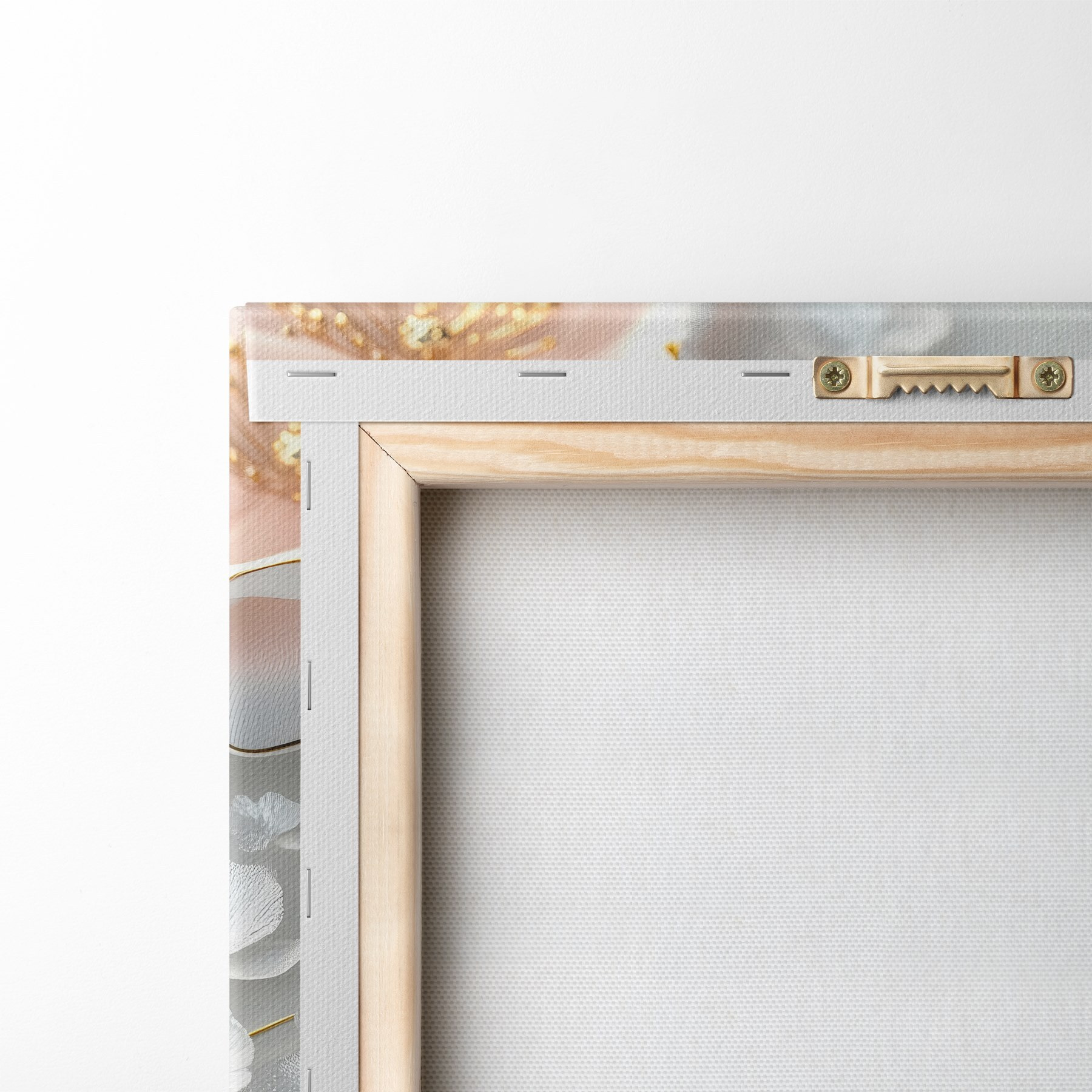 Om het doek op te spannen op spielatten zonder de afbeelding te beschadigen, gebruiken we gespiegeld beeld.