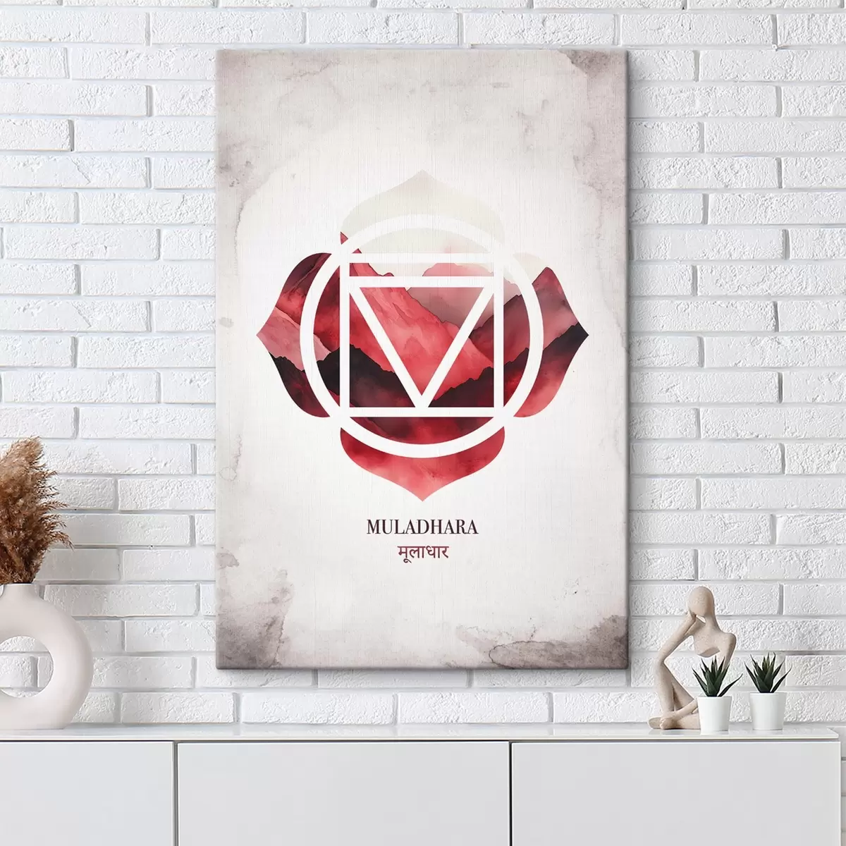 Schilderij Muladhara chakra, rood chakra, esoterisch, meditatie, boeddhisme, aquarel stijl bergen Art. s41880