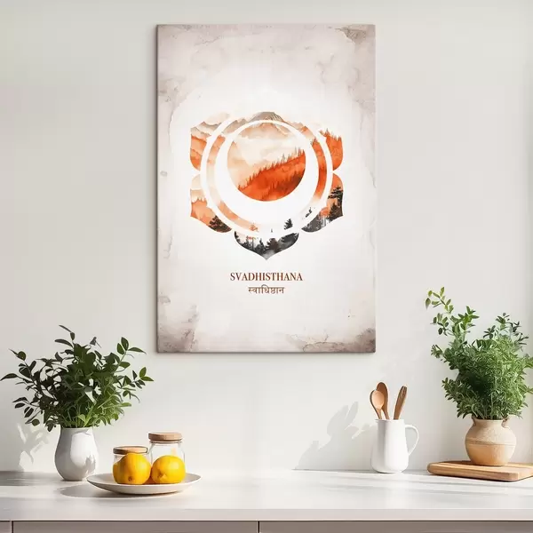 Schilderij Svadhisthana chakra, oranje chakra, esoterisch, meditatie, boeddhisme, aquarel stijl bergen Art. s41881