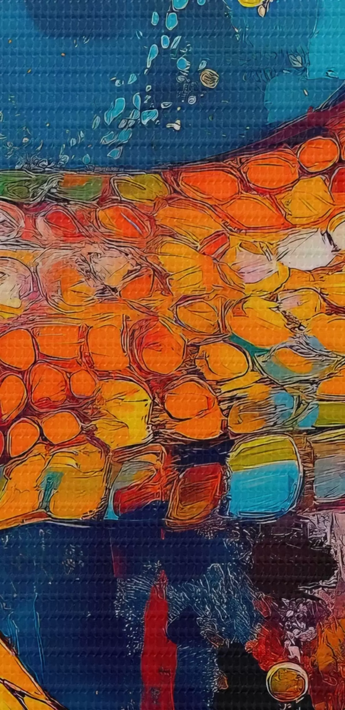 Het schilderij kan direct na ontvangst worden opgehangen. Het schilderij wordt opgespannen op een 2 cm breed houten spieraam.