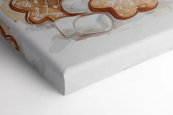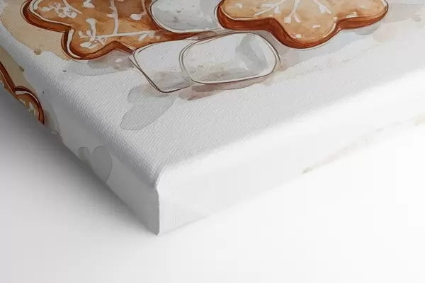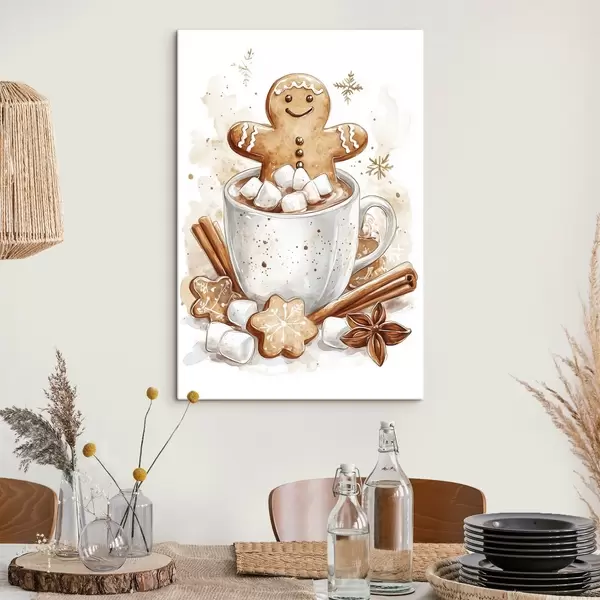 Schilderijen Peperkoekmannen in het kopje koffie, kaneel, marshmallows, aquarel stijl, beige s41948
