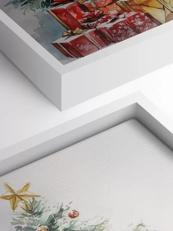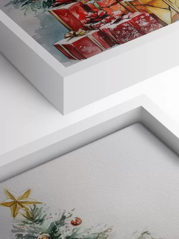 Schilderij Feestelijke kerstboom met ingepakte cadeautjes, sneeuw, aquarel stijl Art. s41953
