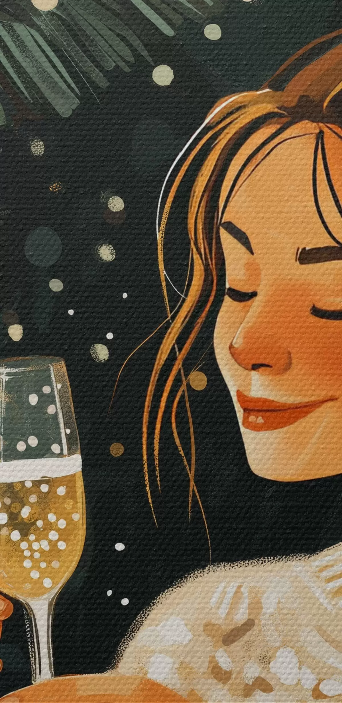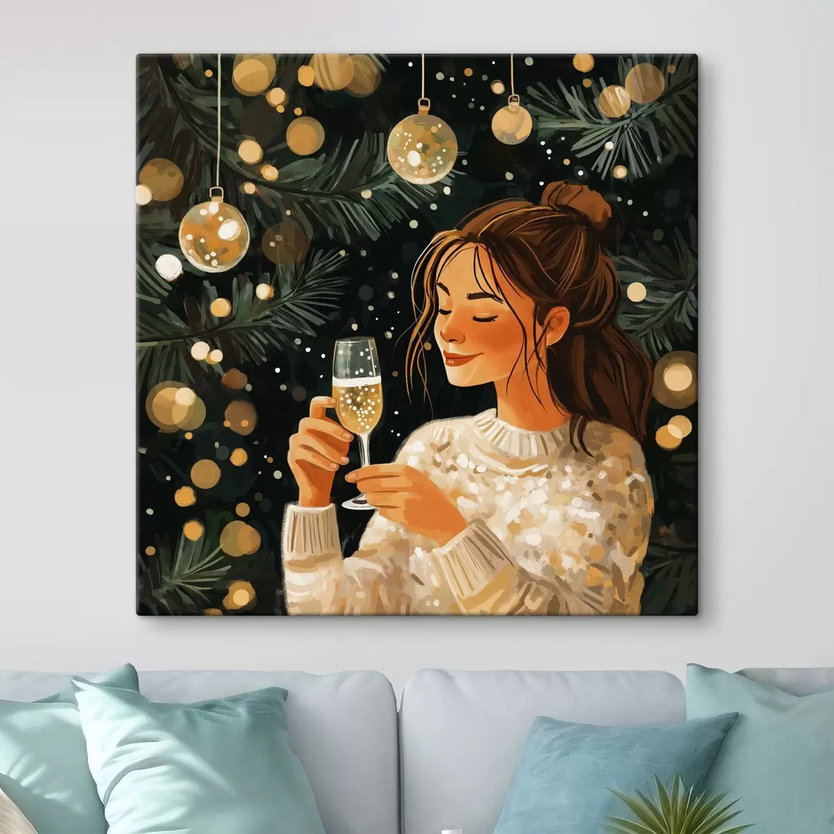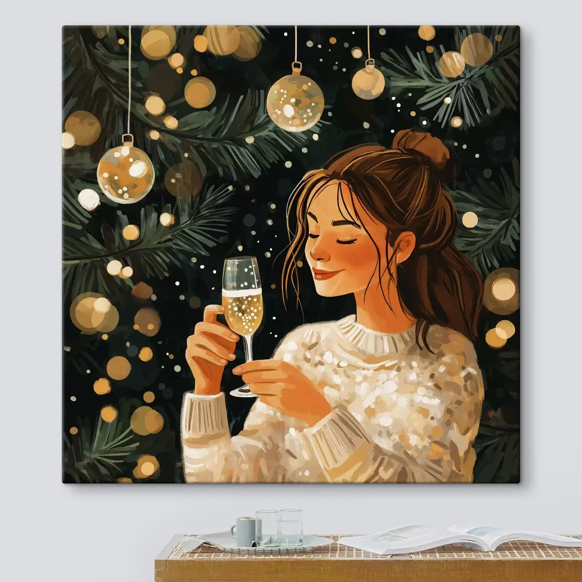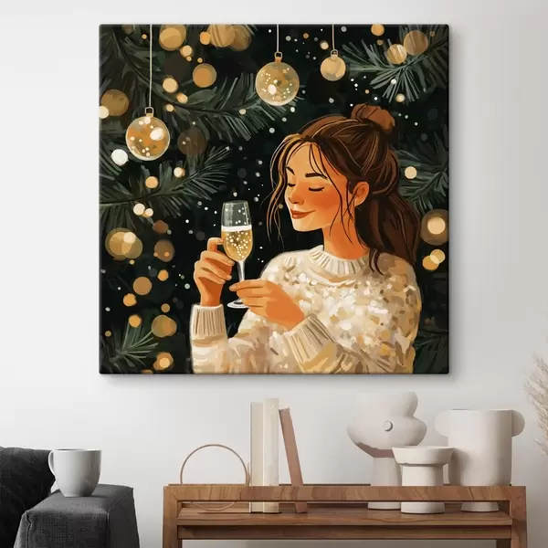 Schilderij Een meisje met een glas champagne op oudejaarsavond Art. s42102