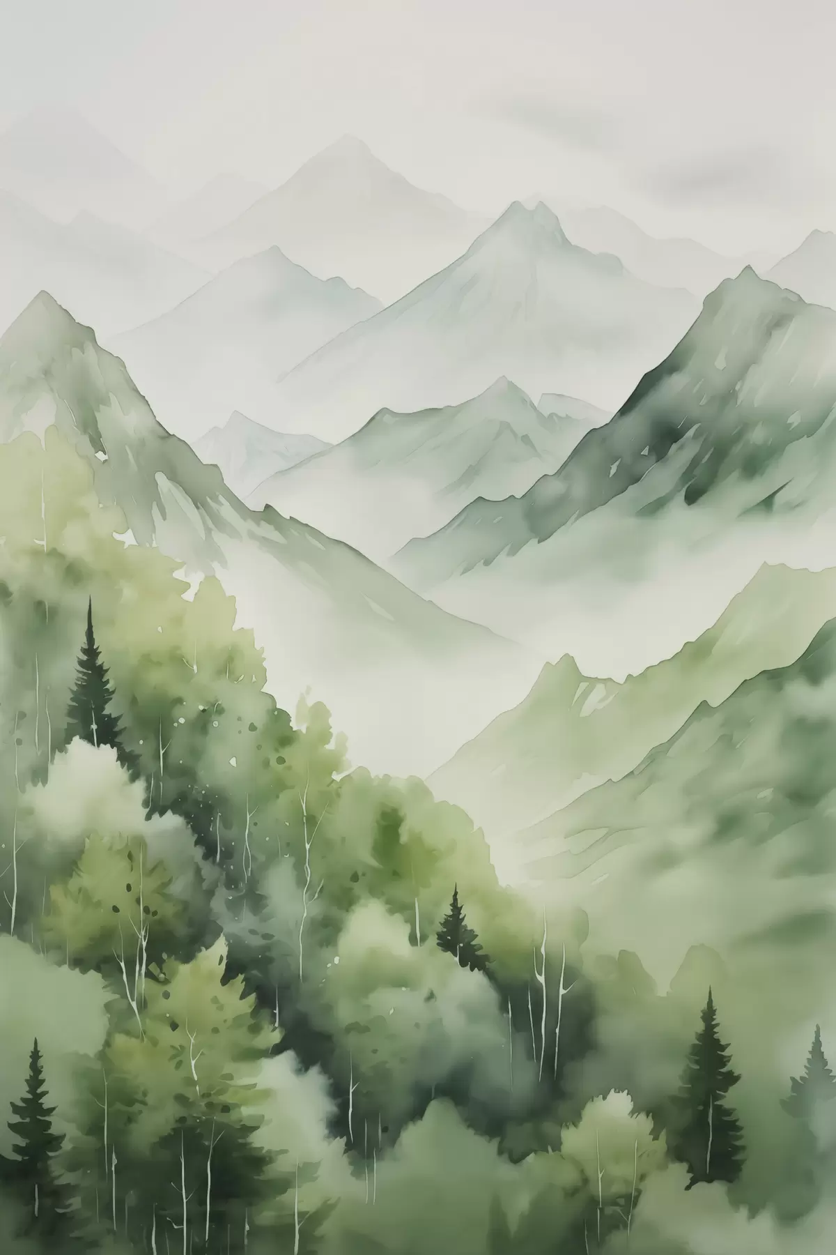 Schilderijen Loofbos in de bergen imitatie van aquarel s42122