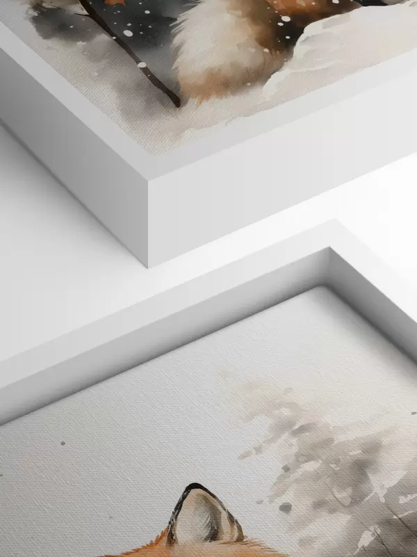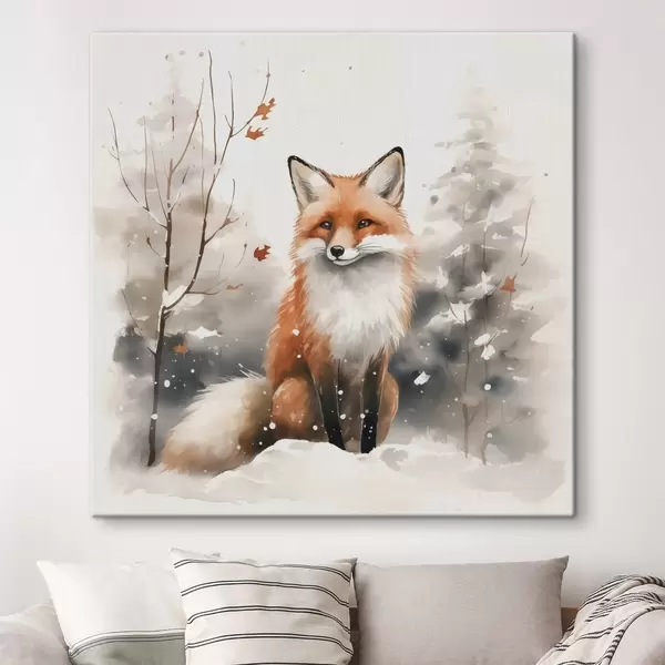 Schilderijen Vossenwelp in een besneeuwd bos imitatie van aquarel s42146