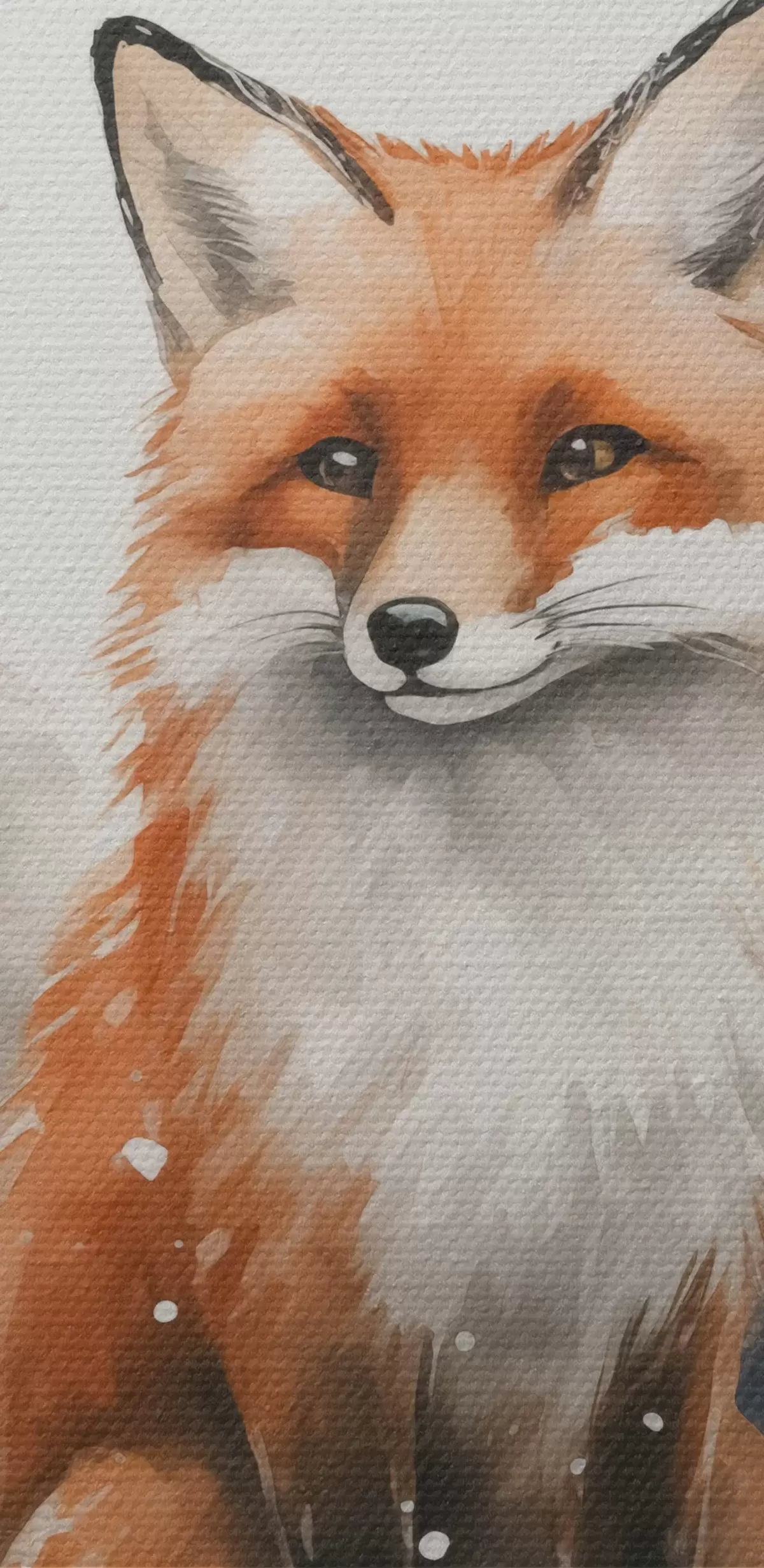 Schilderij Vossenwelp in een besneeuwd bos imitatie van aquarel Art. s42146