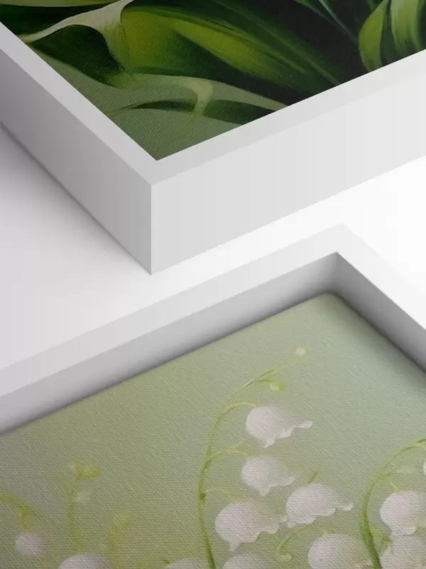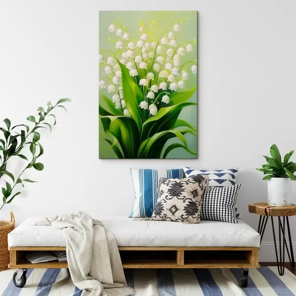 Schilderij Lelietjes-van-dalen op een delicate groene achtergrond Art. s42160