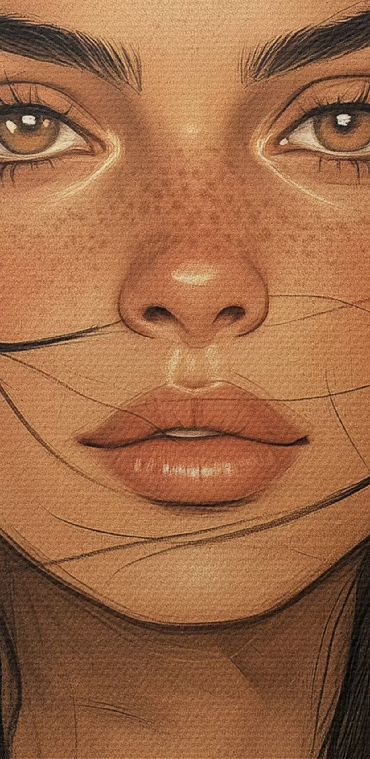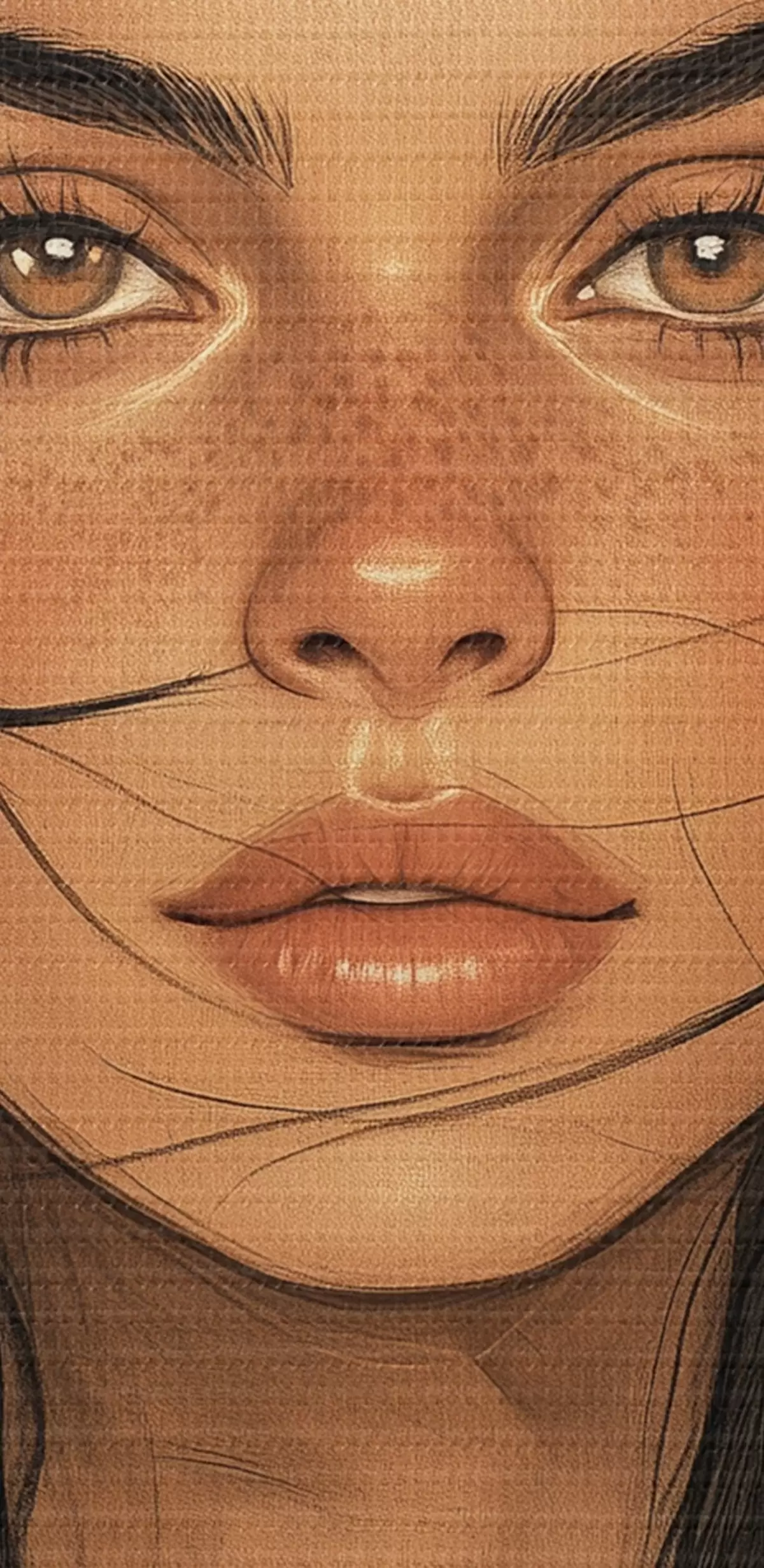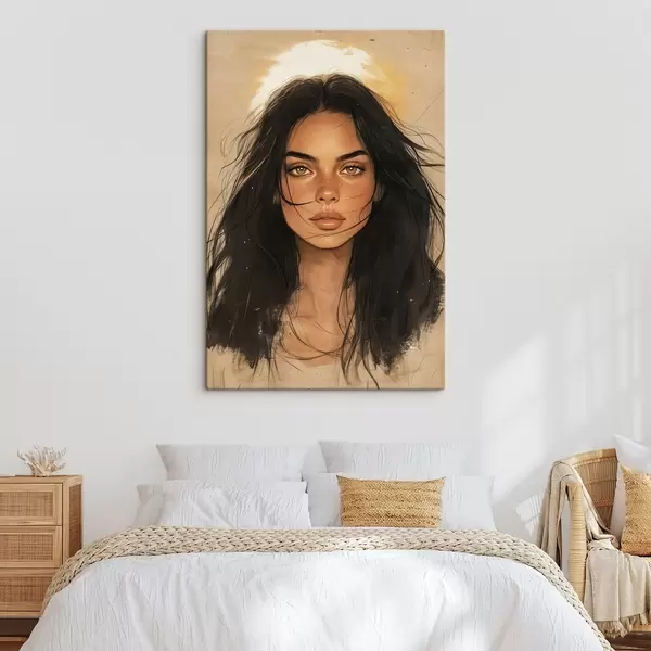 Schilderij Vrouwenportret, tribale stijl, beige kleuren Art. s42197