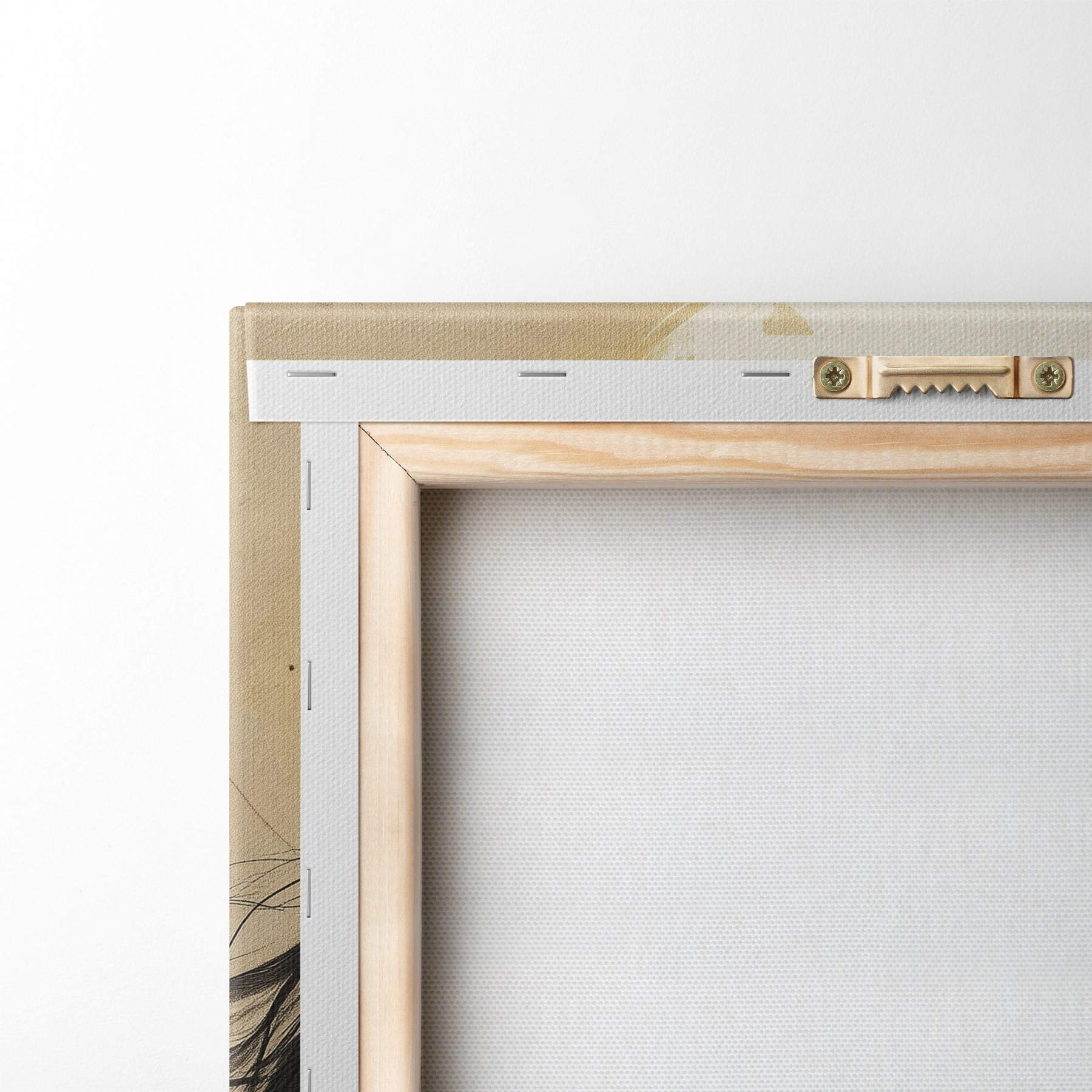 Om het doek op te spannen op spielatten zonder de afbeelding te beschadigen, gebruiken we gespiegeld beeld.
