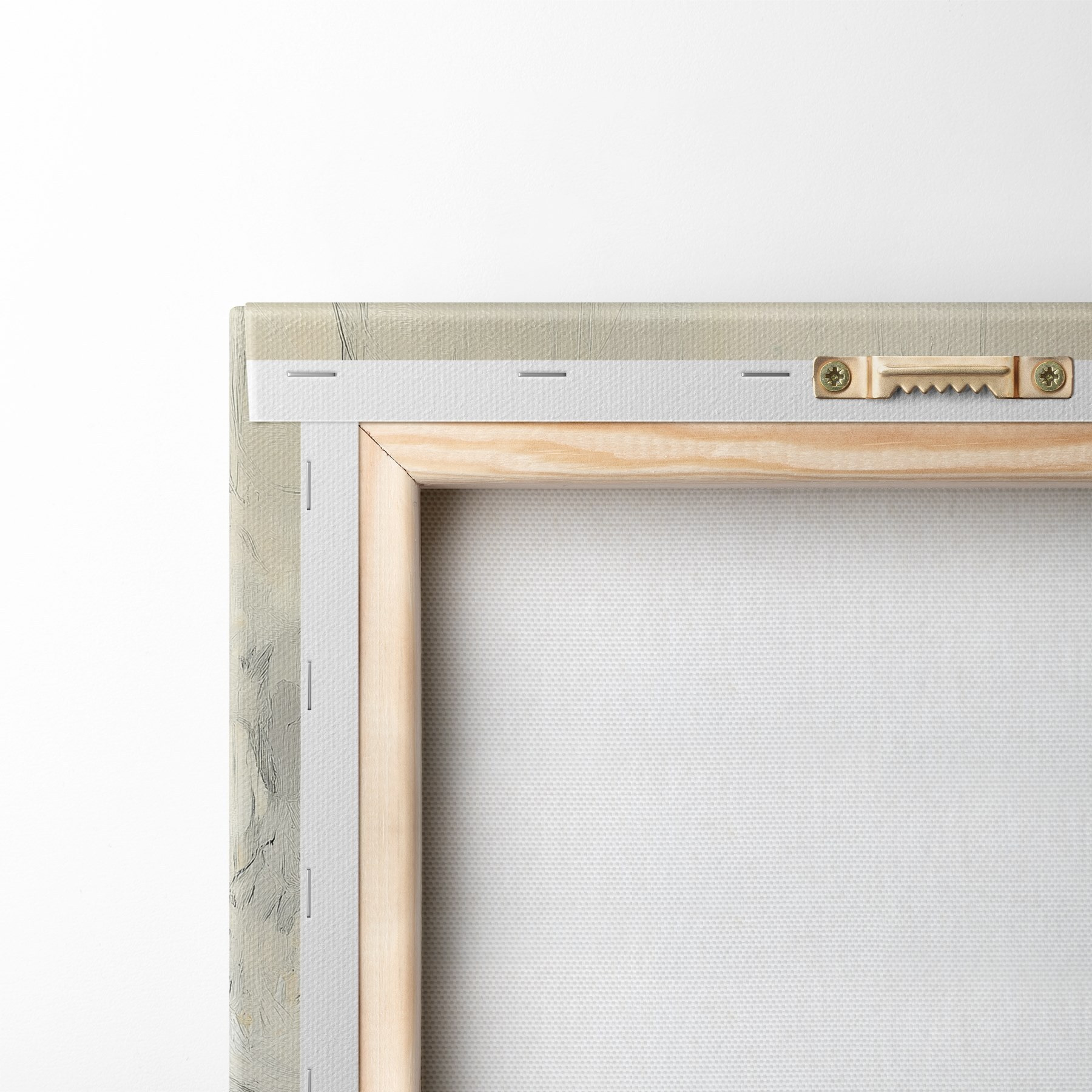 Om het doek op te spannen op spielatten zonder de afbeelding te beschadigen, gebruiken we gespiegeld beeld.