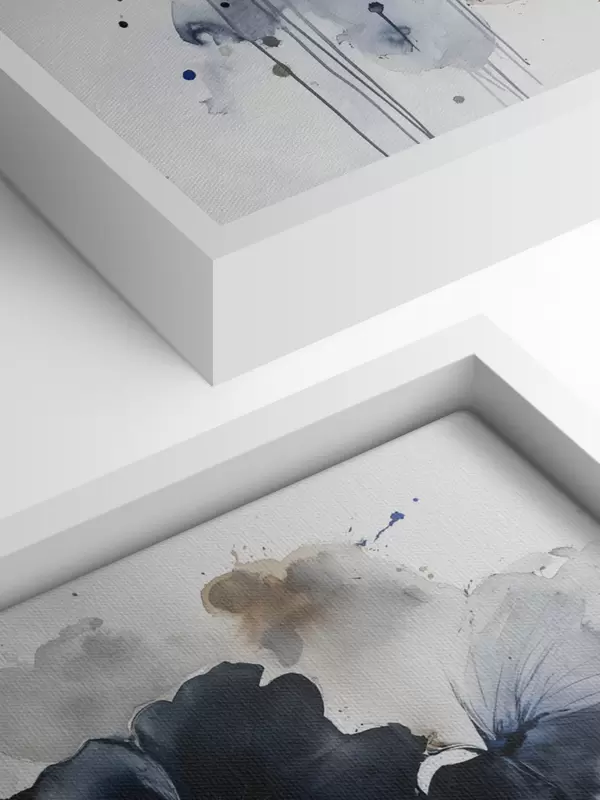 Schilderij Aquarel bloemen, vloeiende stijl, blauwe kleuren Art. s42207