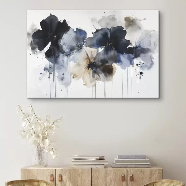 Schilderij Aquarel bloemen, vloeiende stijl, blauwe kleuren Art. s42207