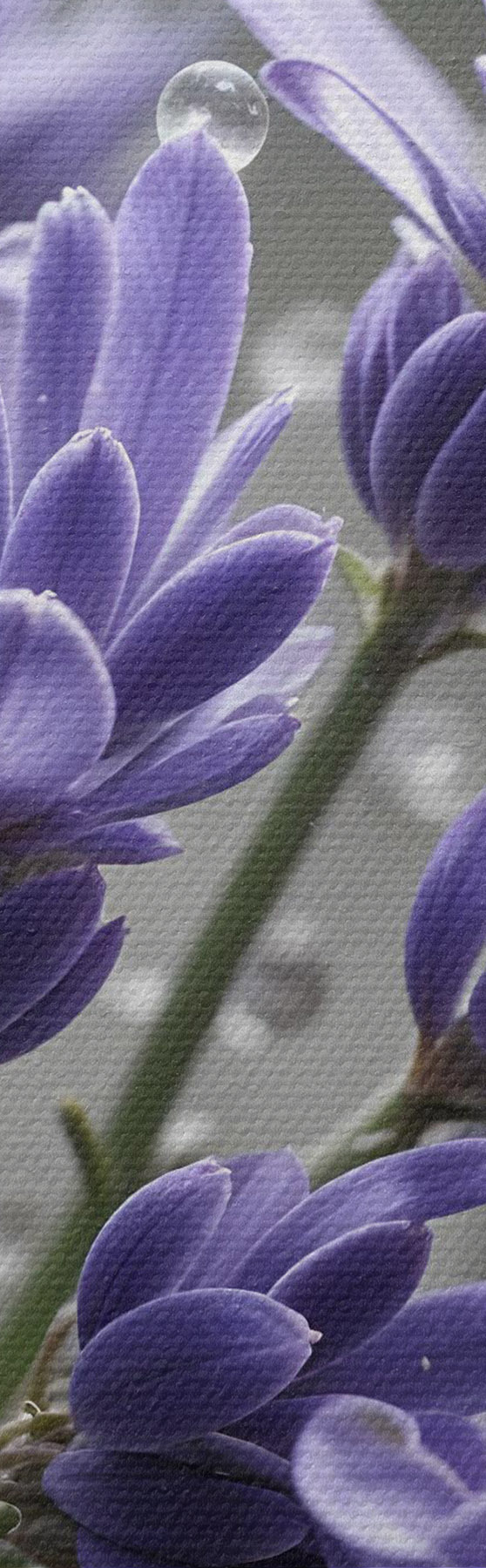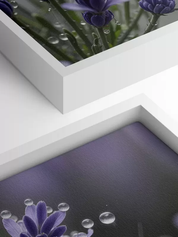 Schilderij Paarse lavendelbloemen met waterdruppels op de bloemblaadjes, tegen een onscherpe achtergrond Art. s42229